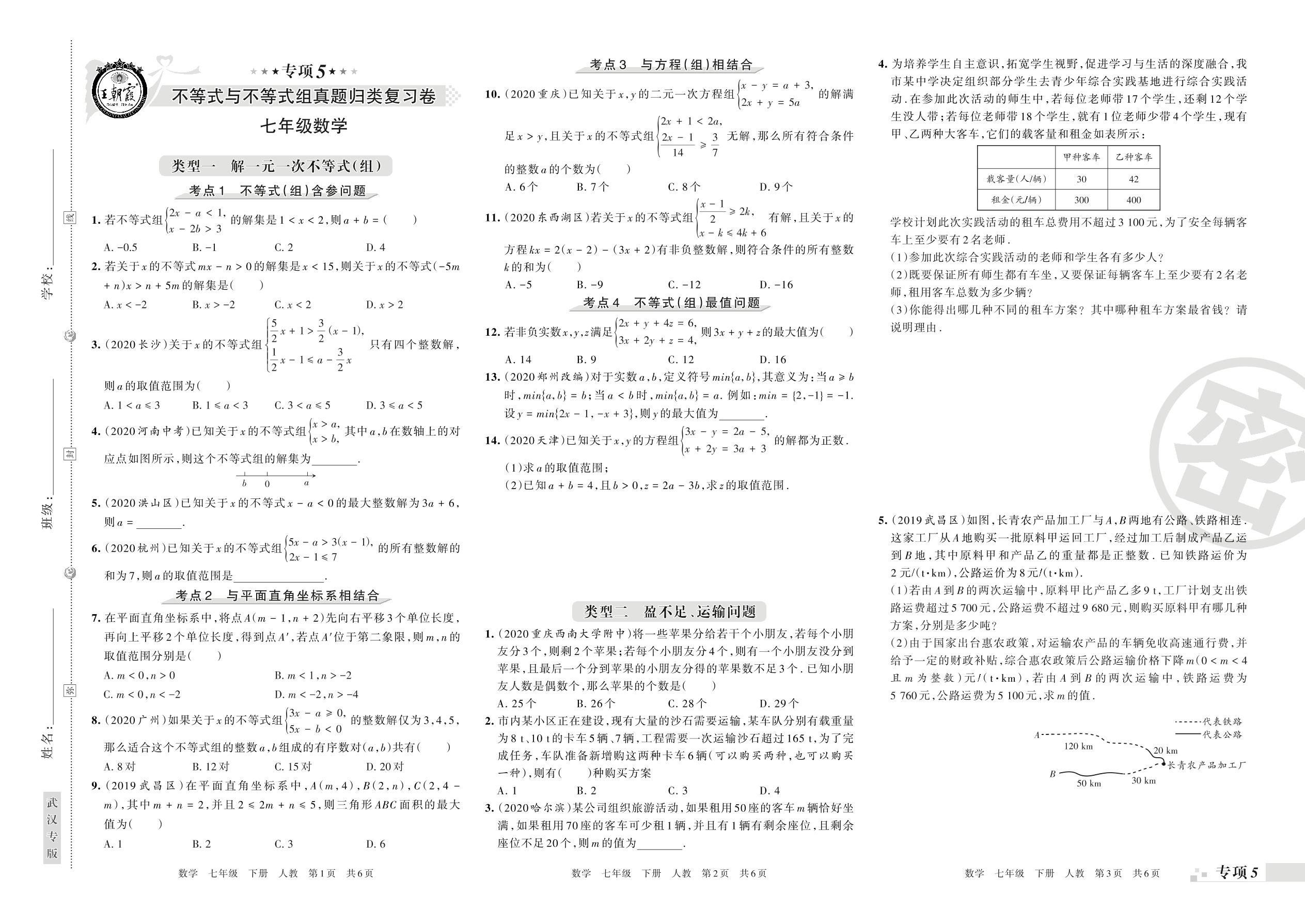 王朝霞期末专项卷——不等式与不等式组真题归类复习七年级下册数学(人教版)【0】