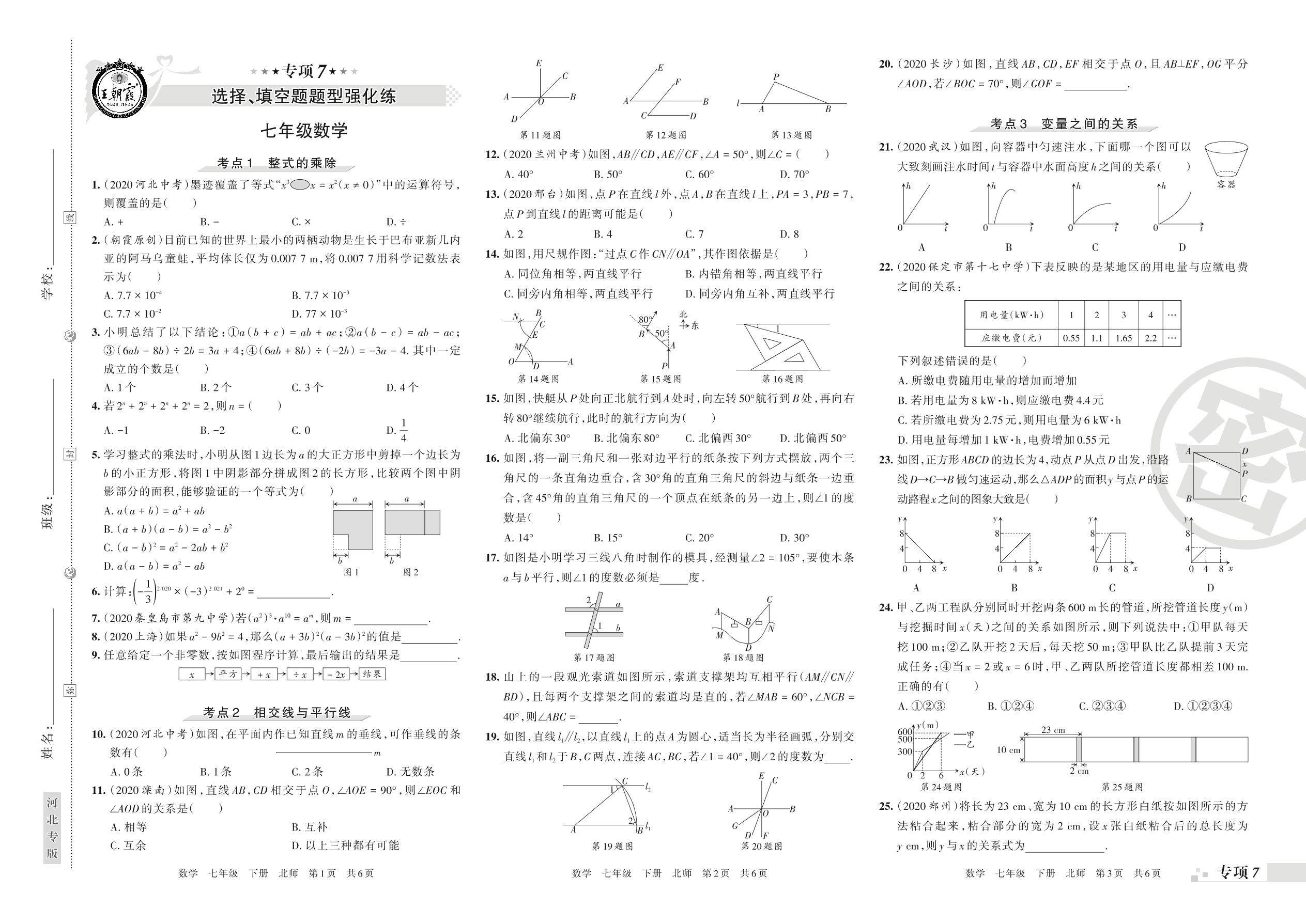 王朝霞期末专项卷——选择、填空题题型强化练七年级下册数学(北师版)【0】