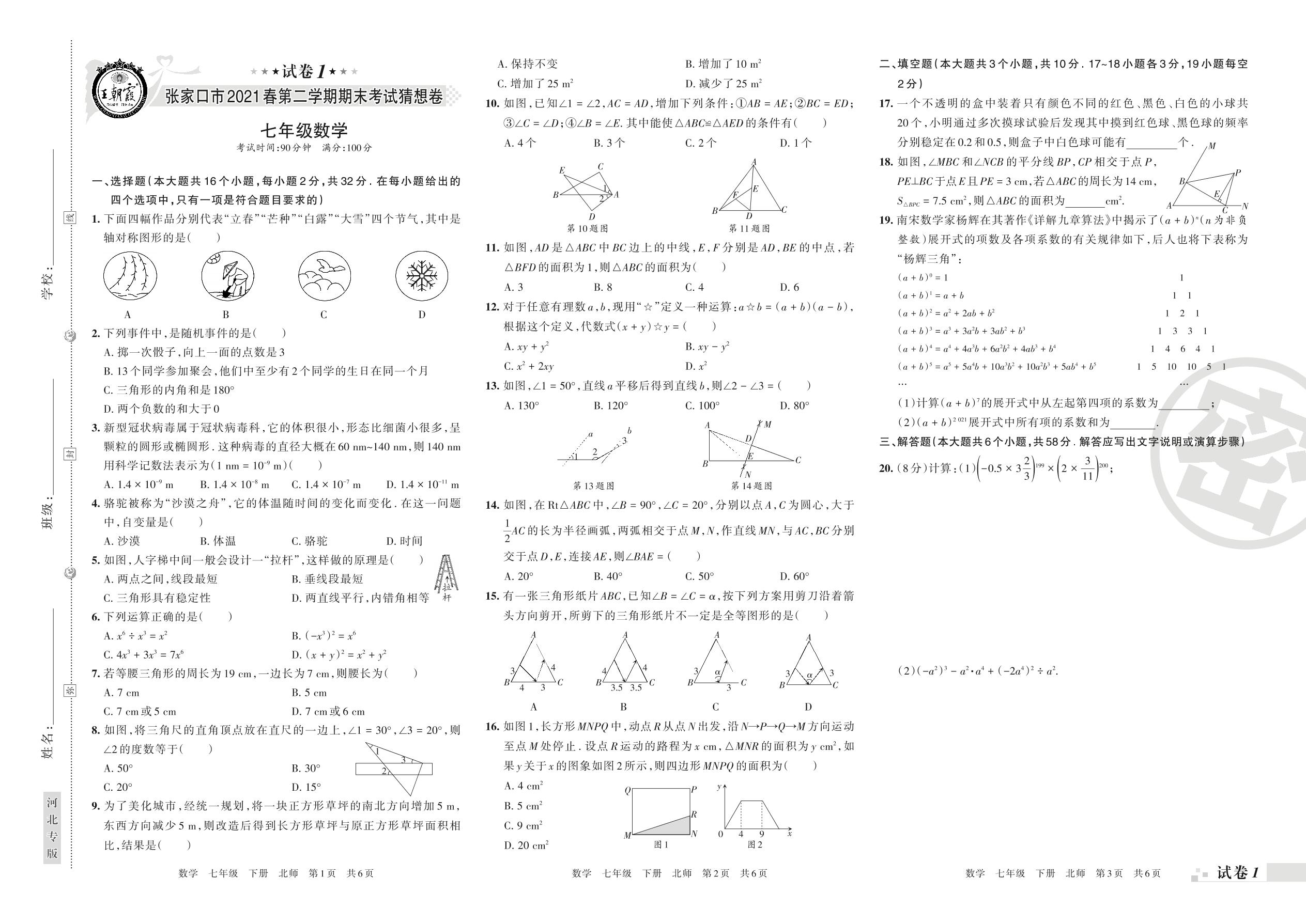 2020-2021学年第二学期张家口市七年级数学试卷(北师版)【1】