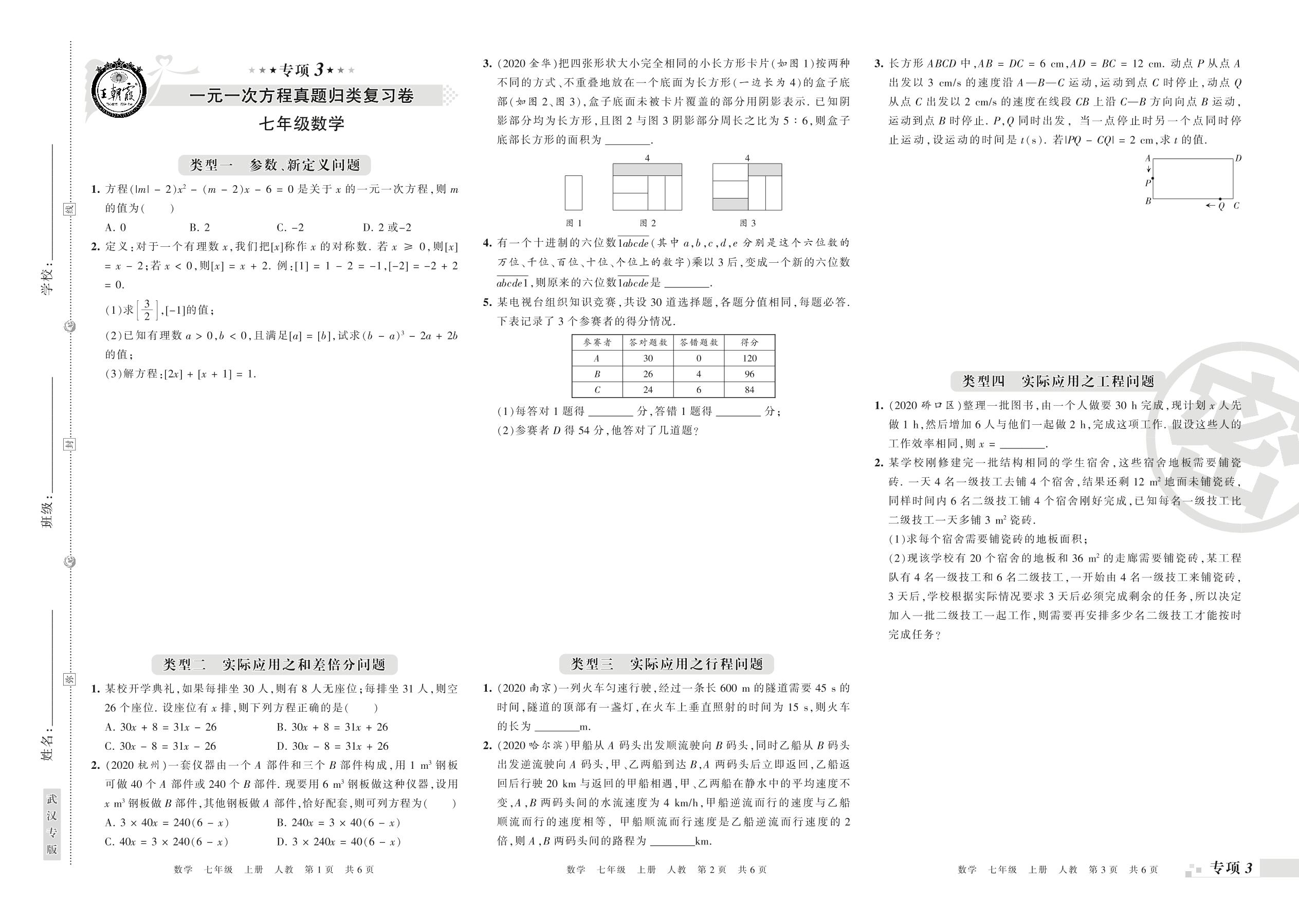 王朝霞期末专项卷——一元一次方程真题归类复习七年级上册数学(人教版)_R210805150755【0】