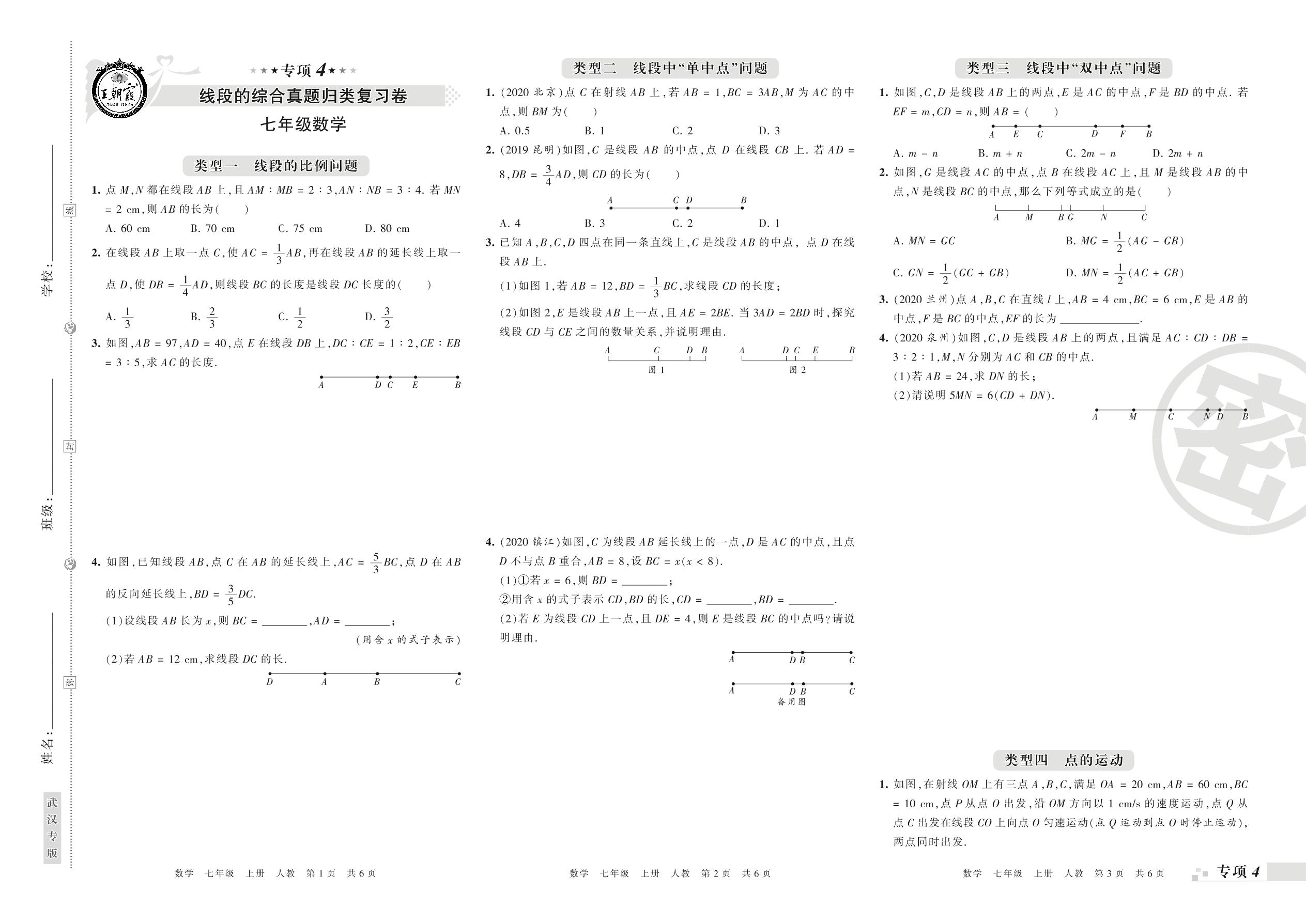 王朝霞期末专项卷——线段的综合真题归类复习七年级上册数学(人教版)