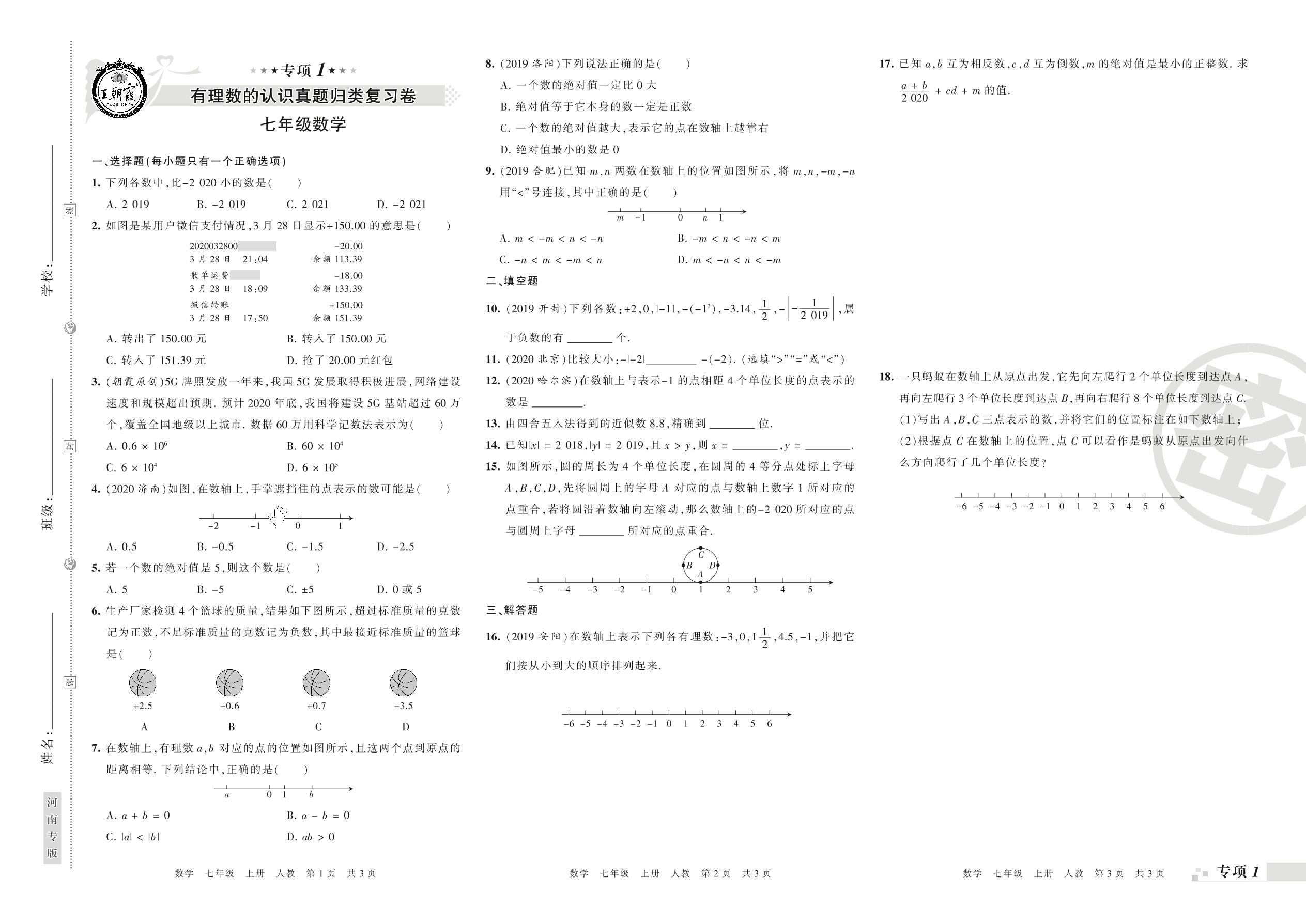 王朝霞期末专项卷——有理数的认识、有理数的运算真题归类复习七年级上册数学(人教版)【0】