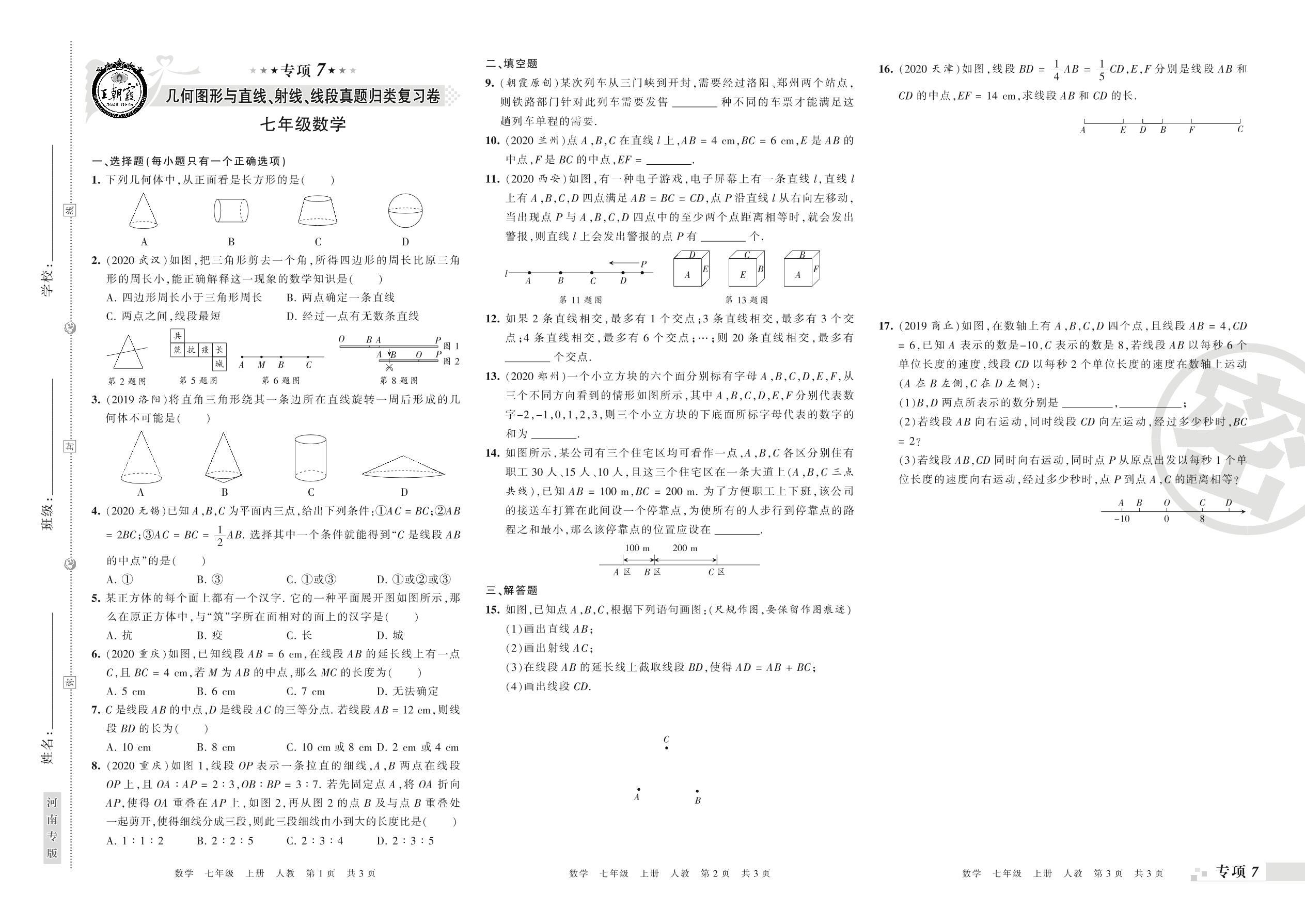 王朝霞期末专项卷——几何图形与直线、射线、线段、角真题归类复习七年级上册数学(人教版)【0】