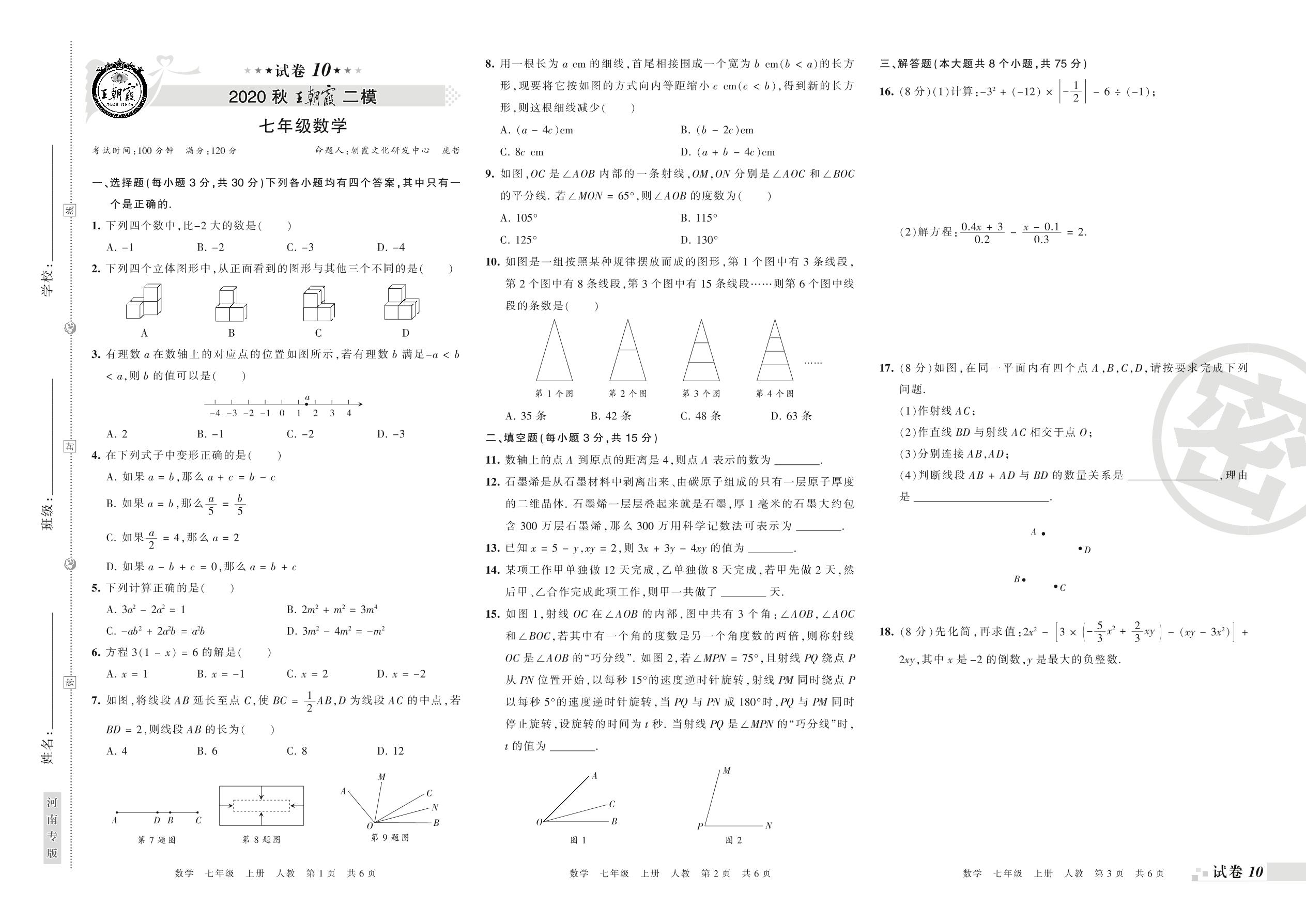 王朝霞期末模拟卷七年级上册数学(人教版)_R210805151047【10】