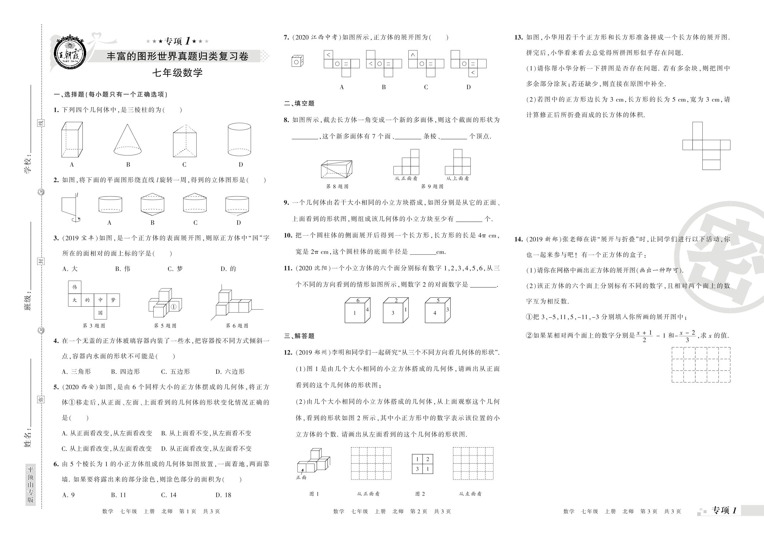 王朝霞期末专项卷——丰富的图形世界、有理数的认识真题归类复习七年级上册数学(北师版)