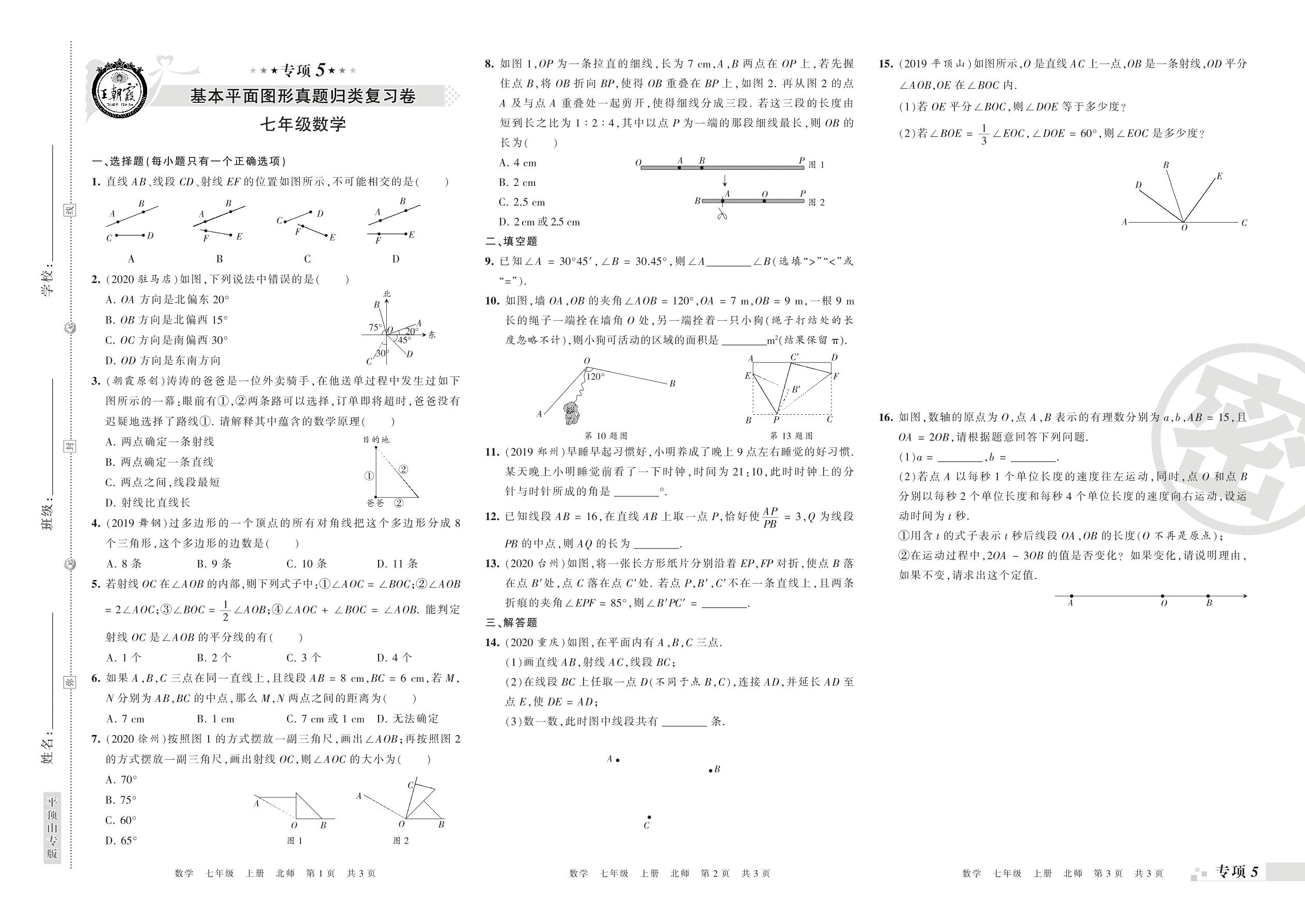 王朝霞期末专项卷——基本平面图形、一元一次方程的认识与解法真题归类复习七年级上册数学(北师版)