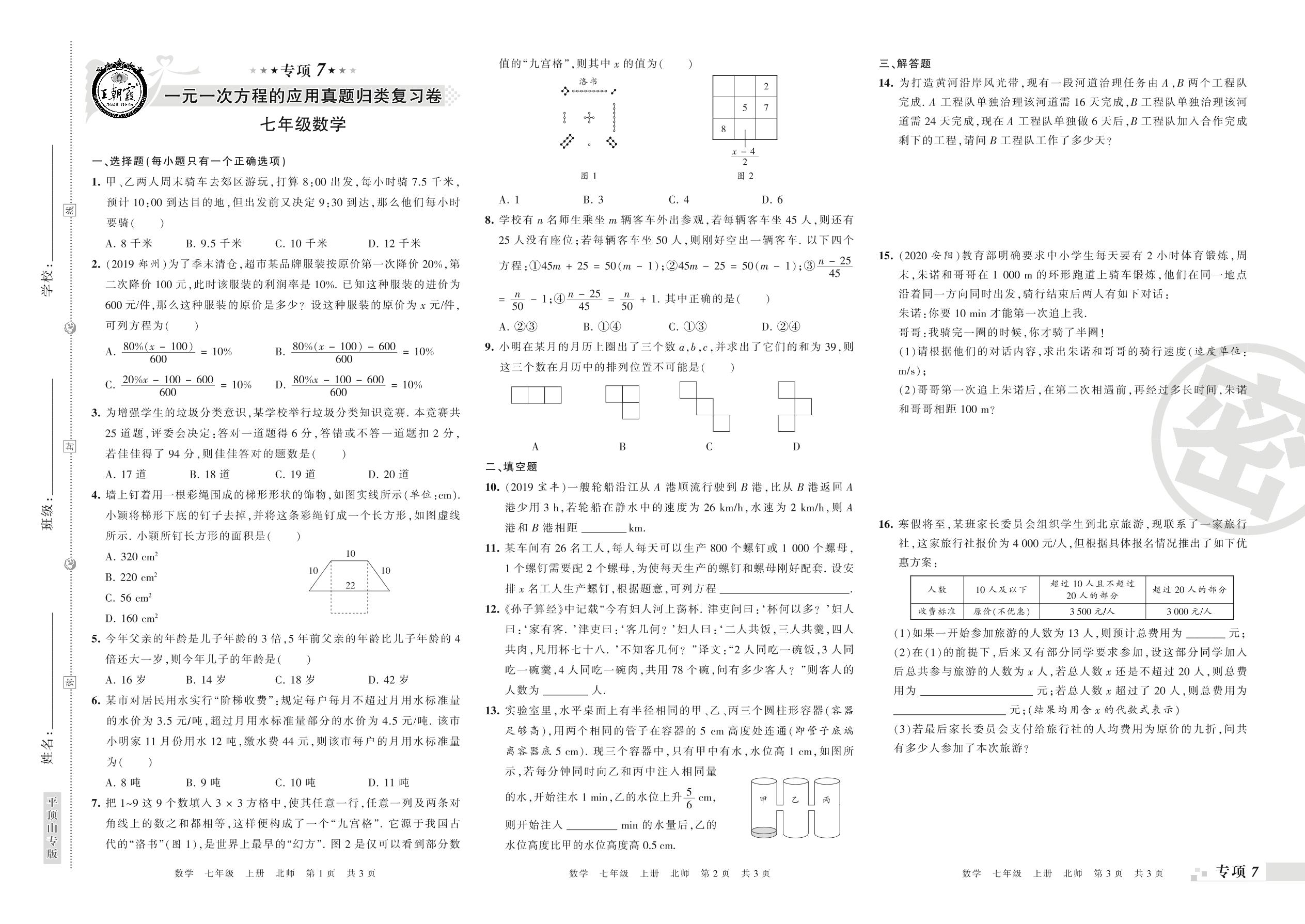 王朝霞期末专项卷——一元一次方程的应用、数据的收集与整理真题归类复习七年级上册数学(北师版)