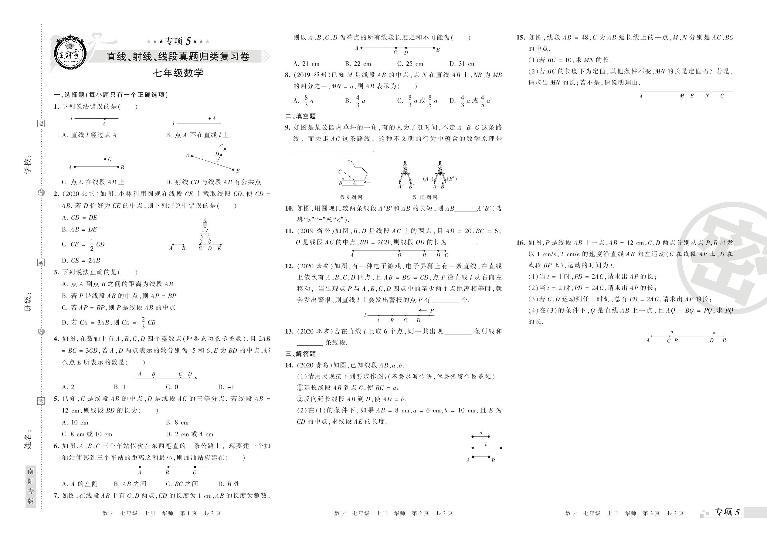 王朝霞期末专项卷——直线、射线、线段、角真题归类复习七年级上册数学(华师版)【0】