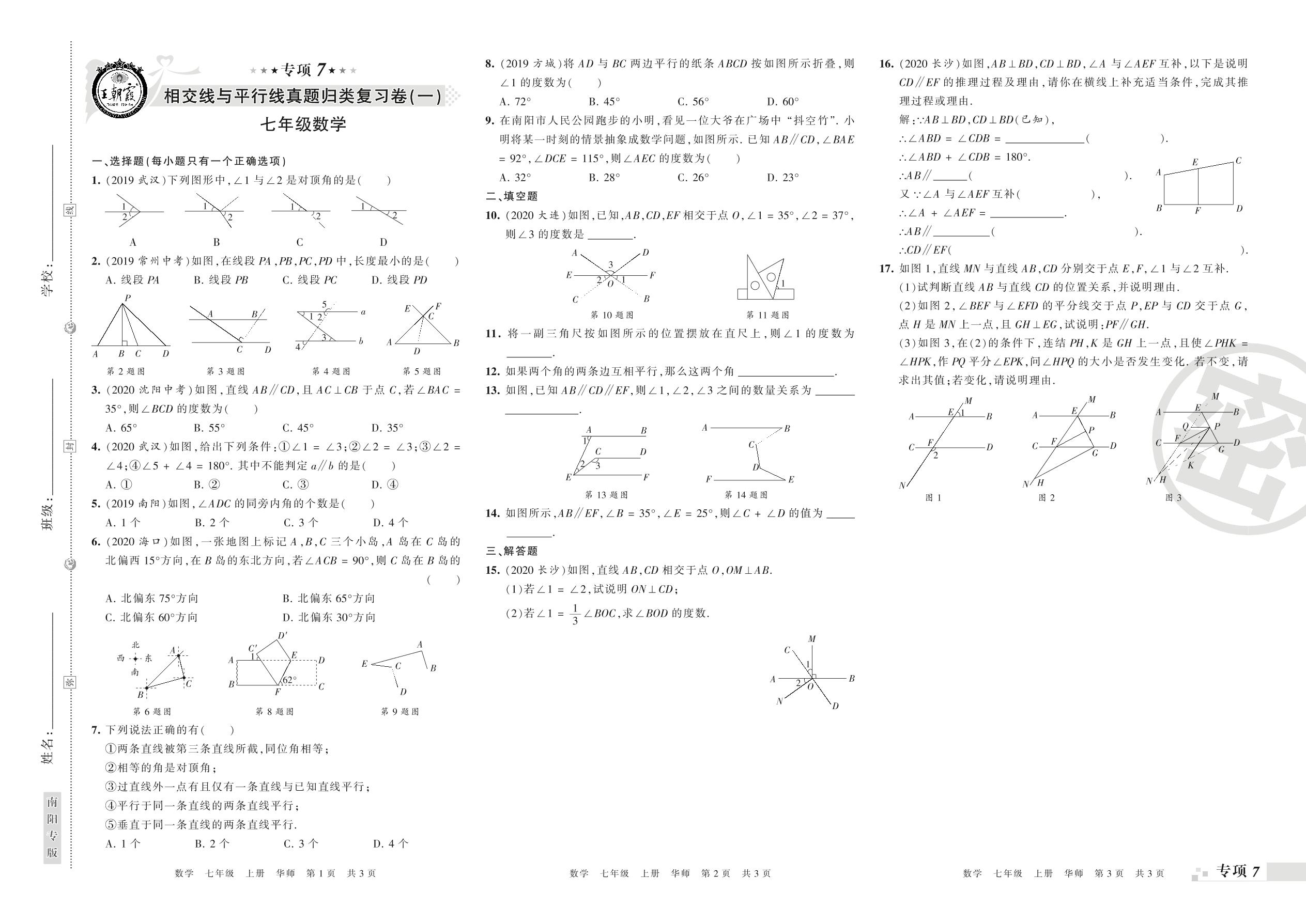 王朝霞期末专项卷——相交线与平行线真题归类复习七年级上册数学(华师版)【0】