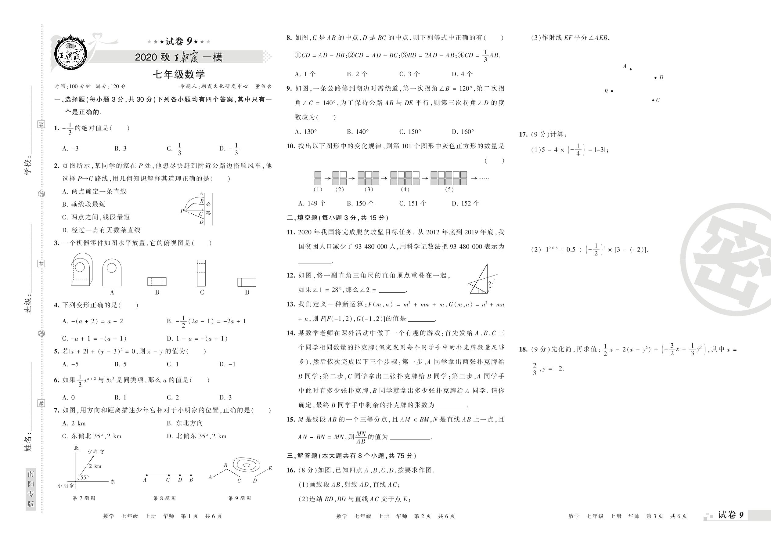王朝霞期末模拟卷七年级上册数学(华师版)_R210805151318【9】