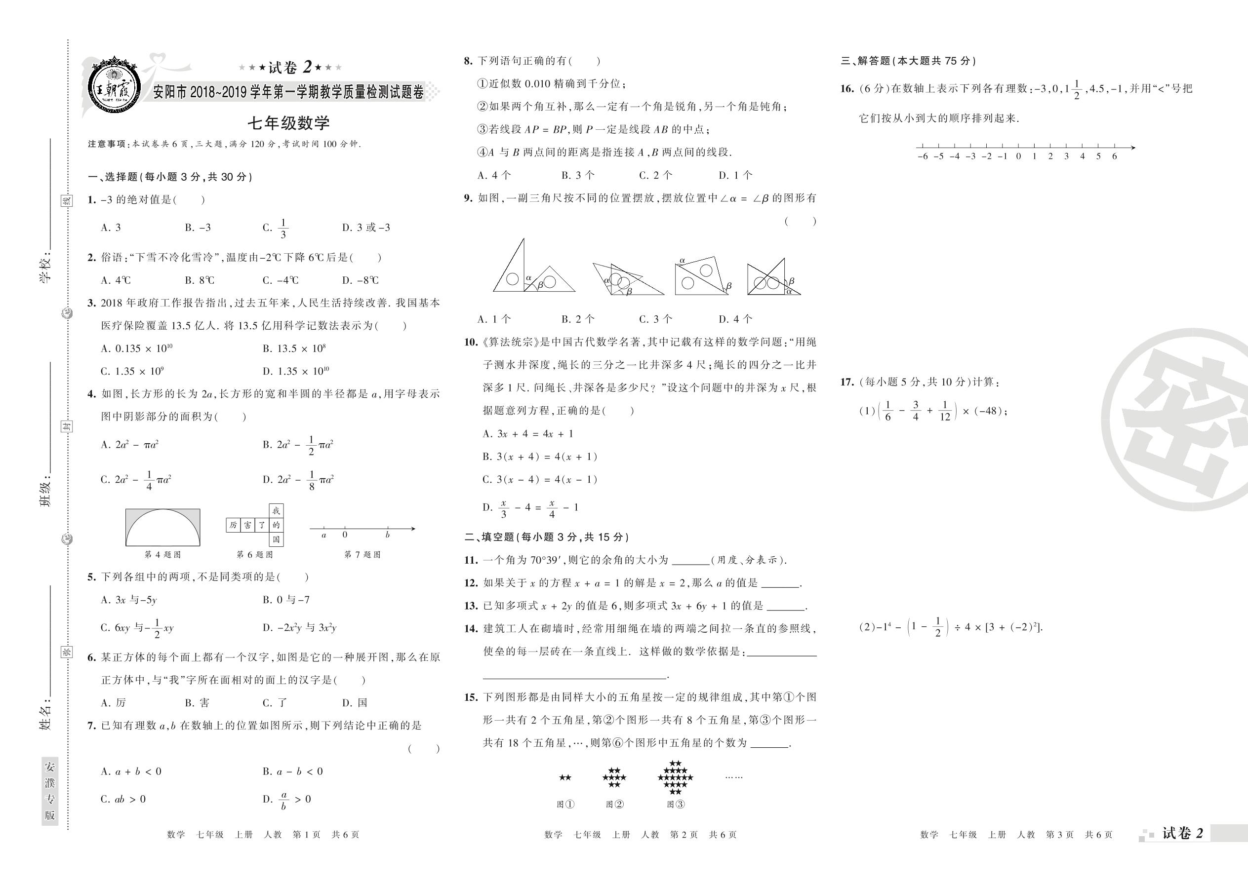 2018-2019学年第一学期安阳市七年级数学试卷(人教版)_R210805151403【2】