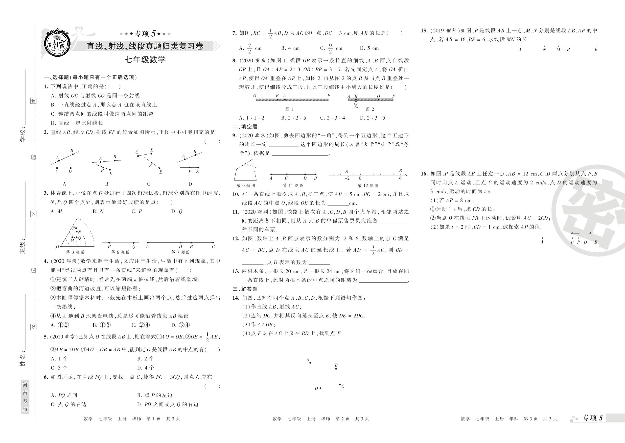 王朝霞期末专项卷——直线、射线、线段、角真题归类复习七年级上册数学(华师版)_R210805151514【0】