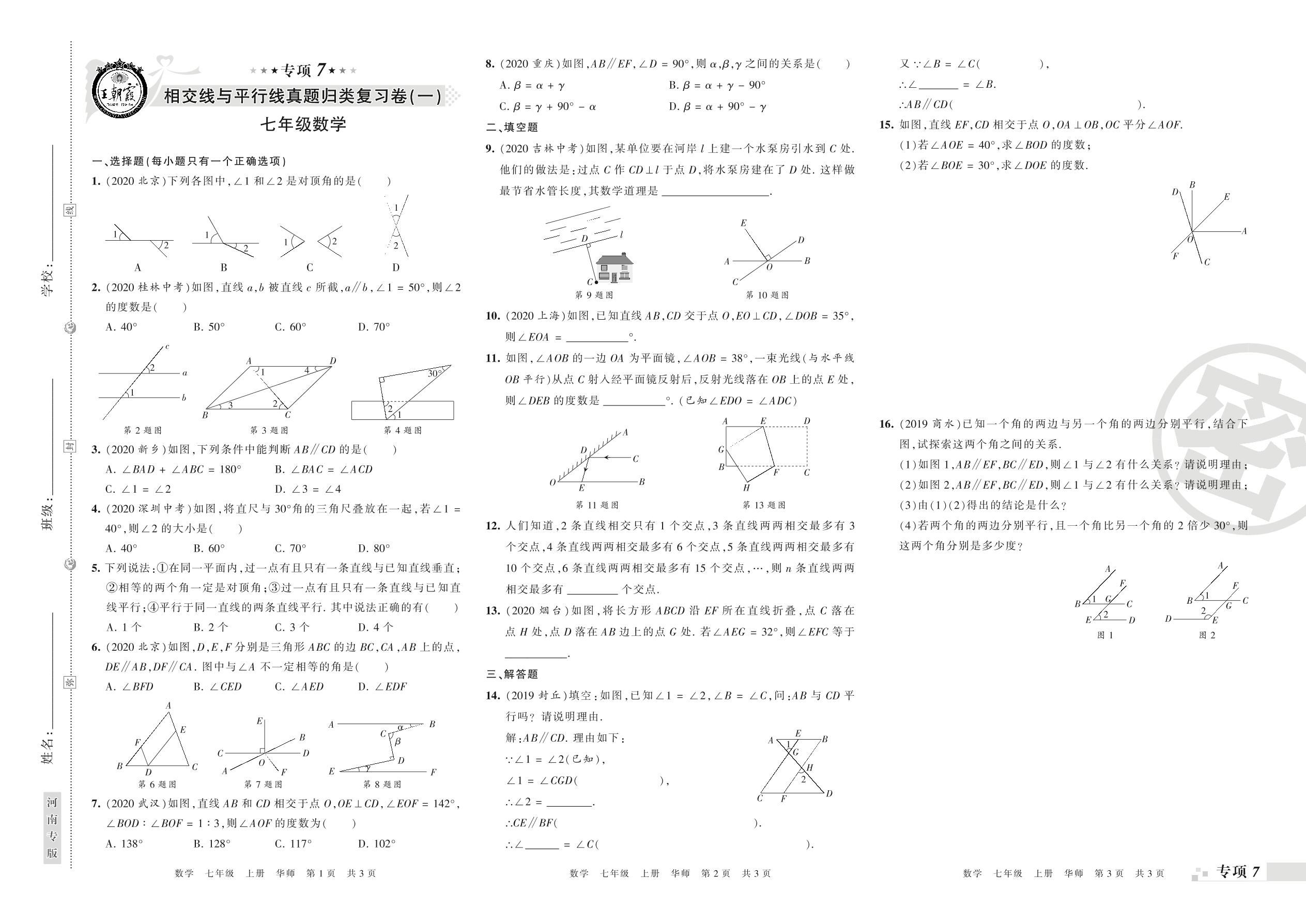 王朝霞期末专项卷——相交线与平行线真题归类复习七年级上册数学(华师版)_R210805151520【0】