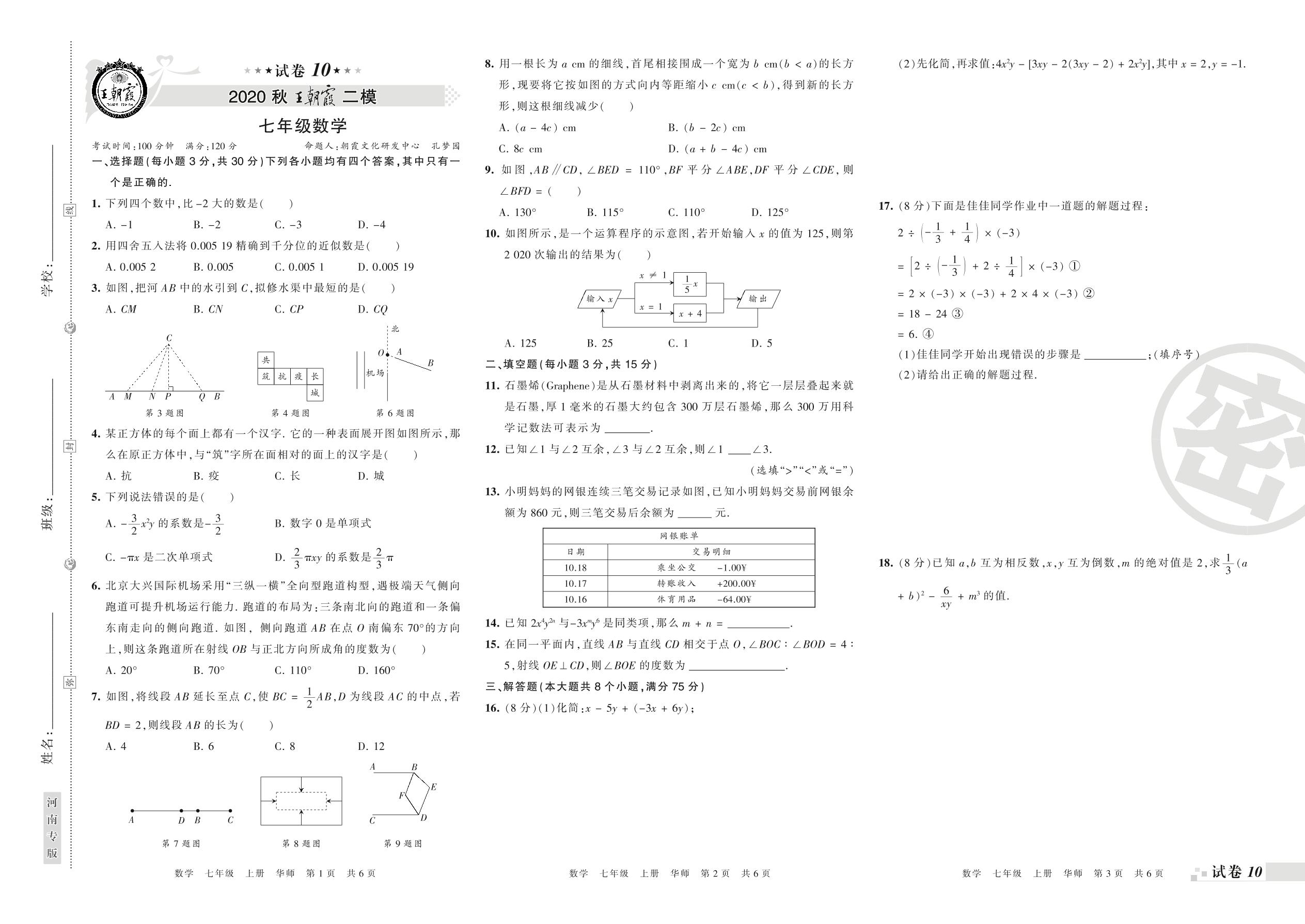 王朝霞期末模拟卷七年级上册数学(华师版)_R210805151600【10】