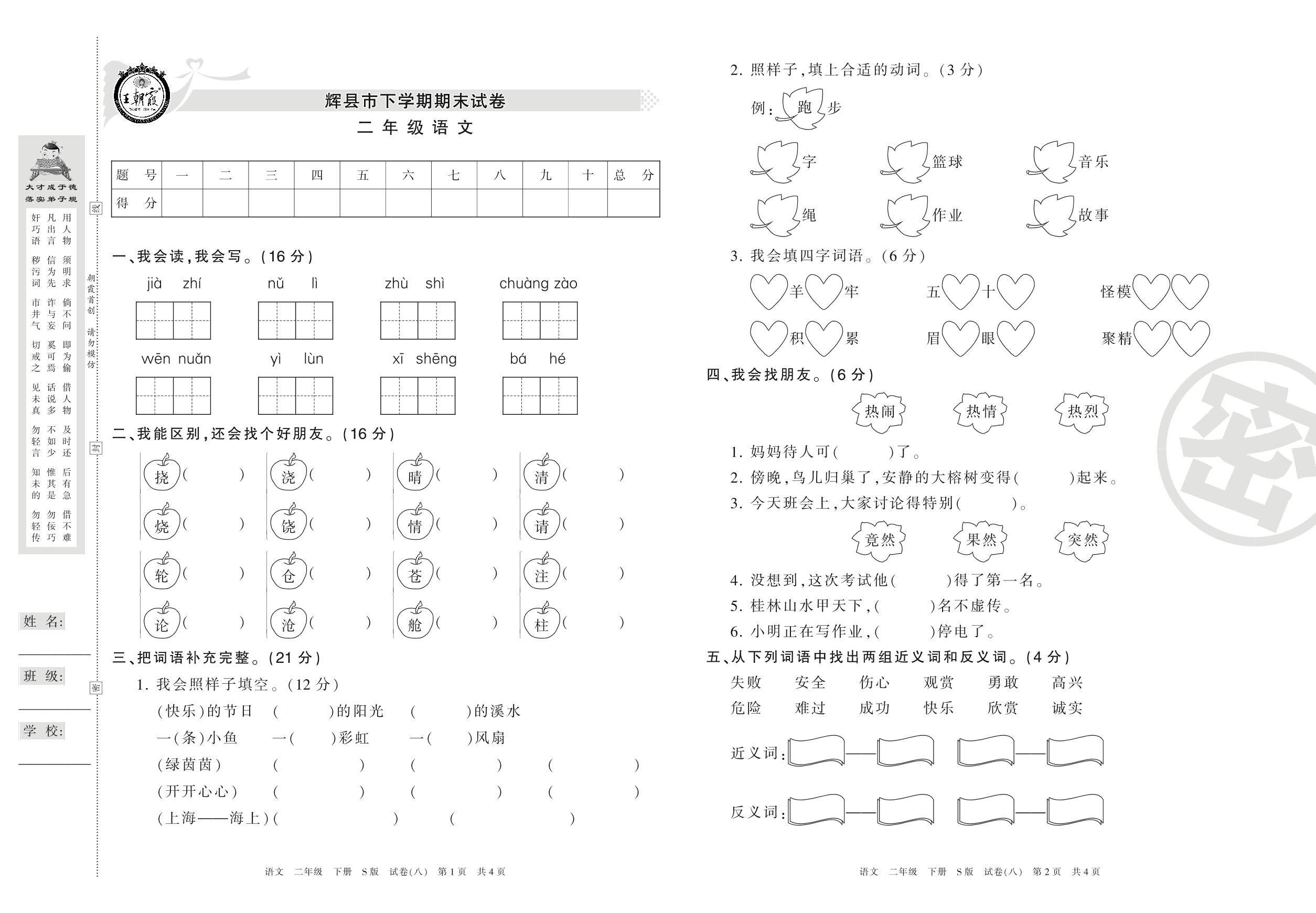 二年级语文S版下册期末卷