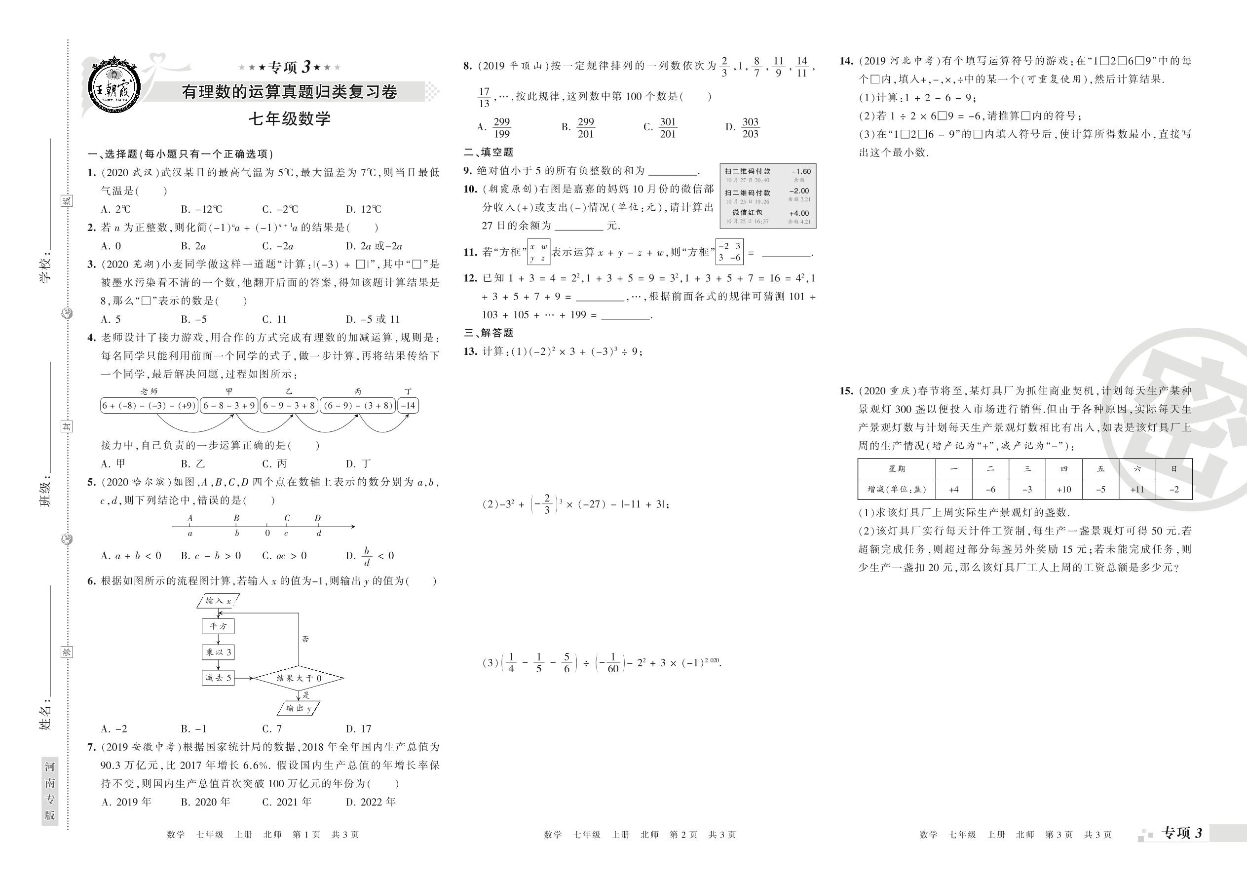 王朝霞期末专项卷——有理数的运算、整式及其加减真题归类复习七年级上册数学(北师版)【0】