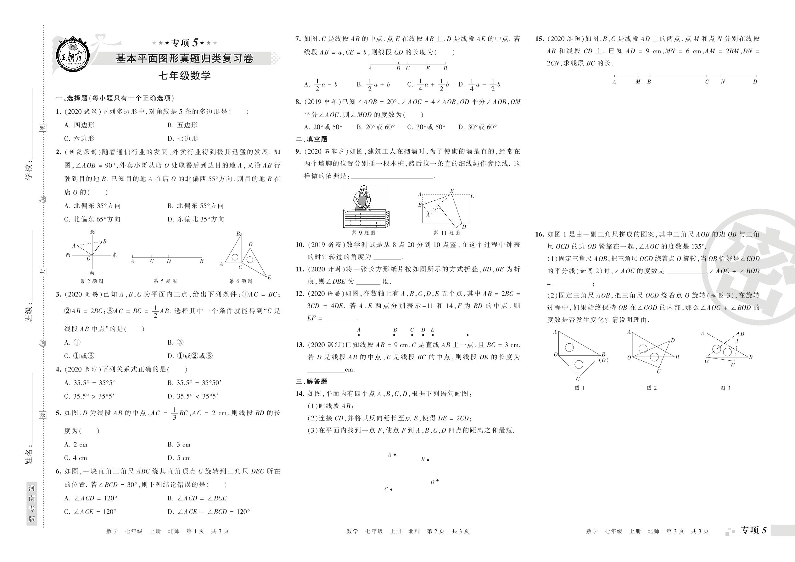 王朝霞期末专项卷——基本平面图形、一元一次方程的认识与解法真题归类复习七年级上册数学(北师版)【0】