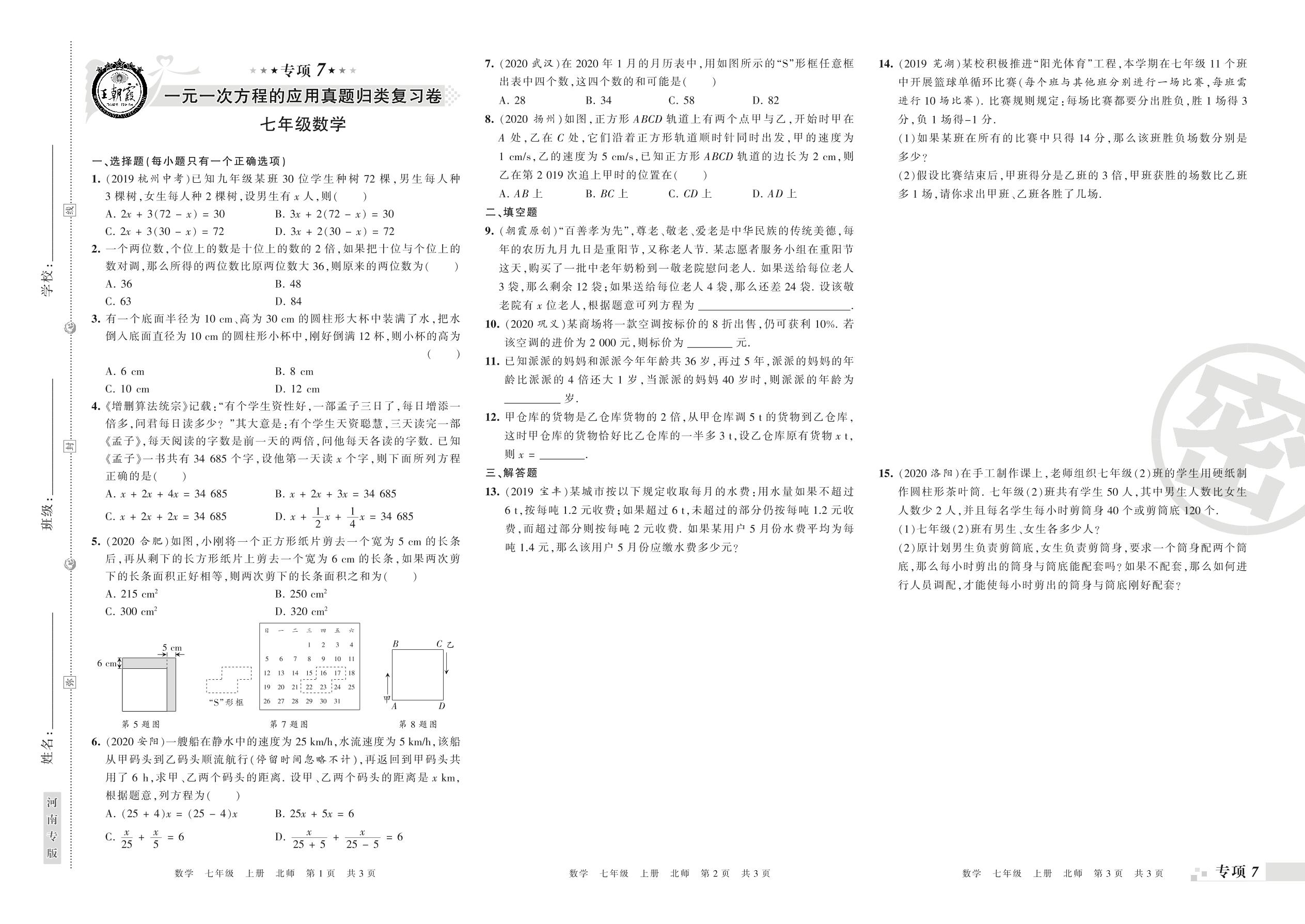 王朝霞期末专项卷——一元一次方程的应用、数据的收集与整理真题归类复习七年级上册数学(北师版)【0】