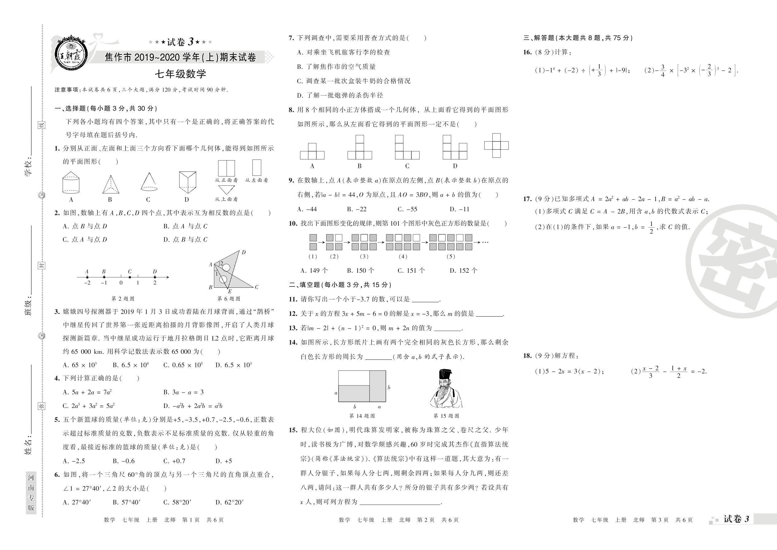 2019-2020学年第一学期焦作市七年级数学试卷(北师版)【3】