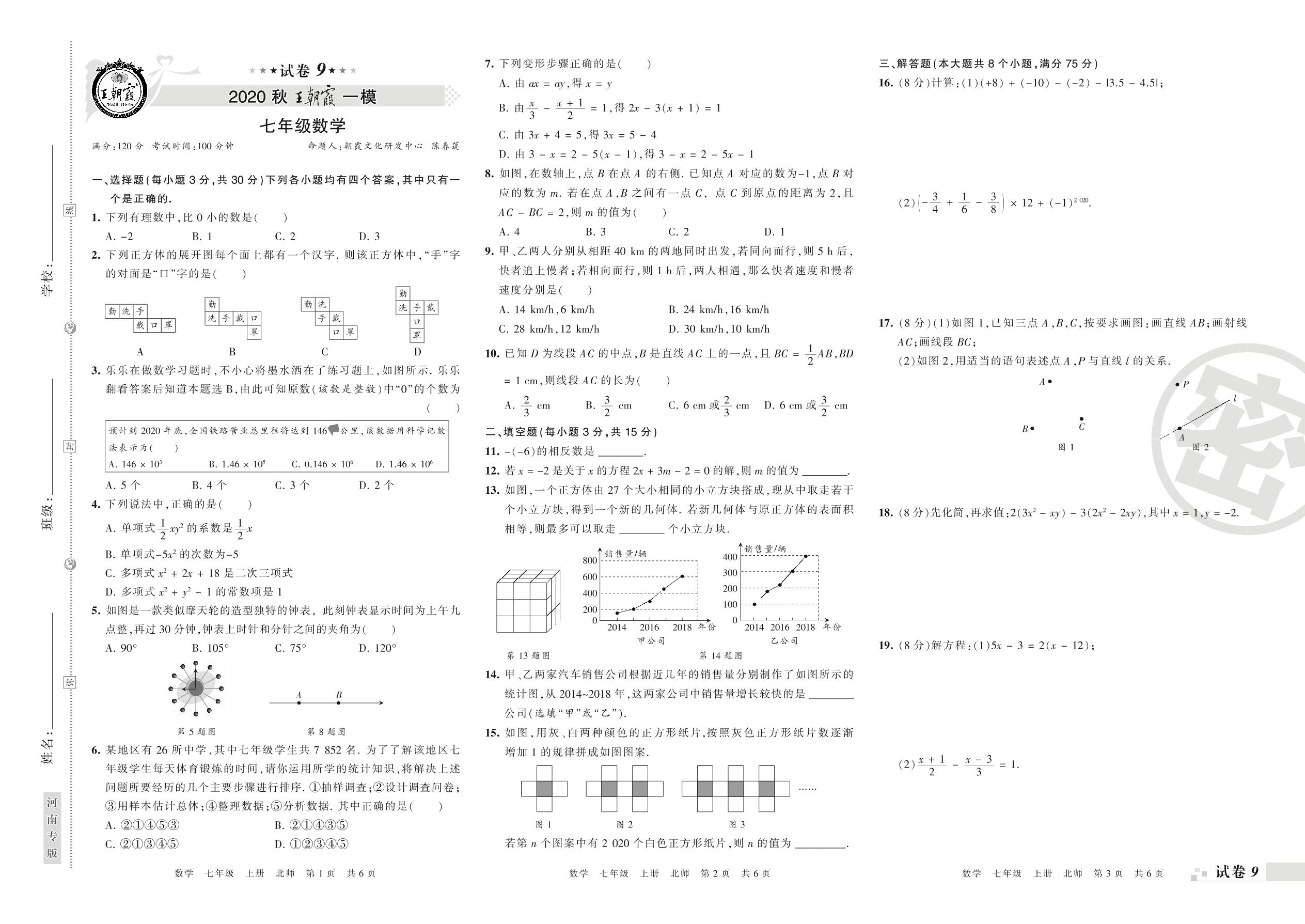 王朝霞期末模拟卷七年级上册数学(北师版)_R210805151703【9】