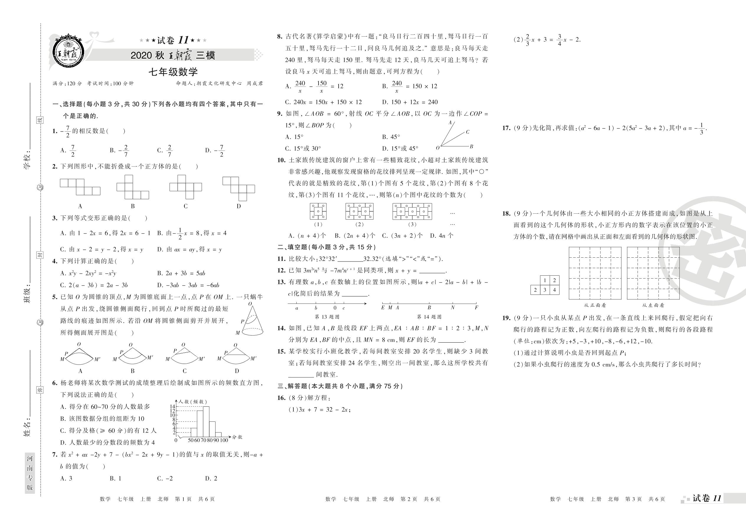王朝霞期末模拟卷七年级上册数学(北师版)_R210805151722【11】