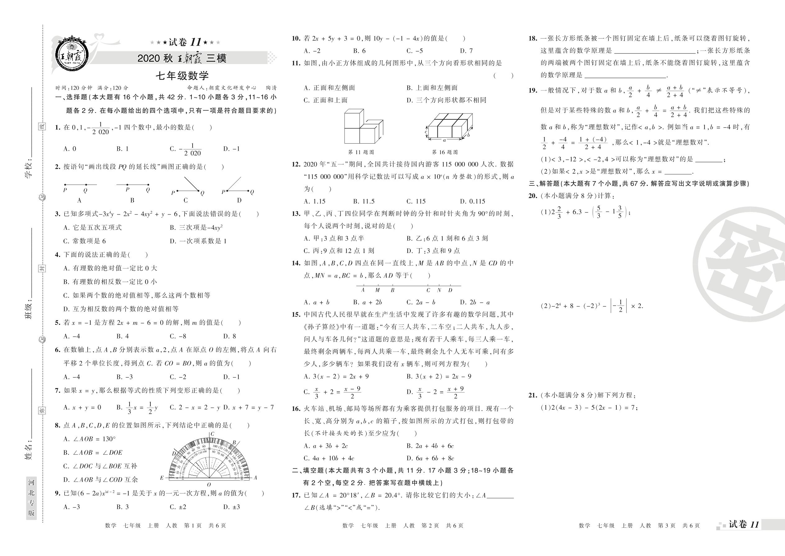 王朝霞期末模拟卷七年级上册数学(人教版)_R210805151910【11】