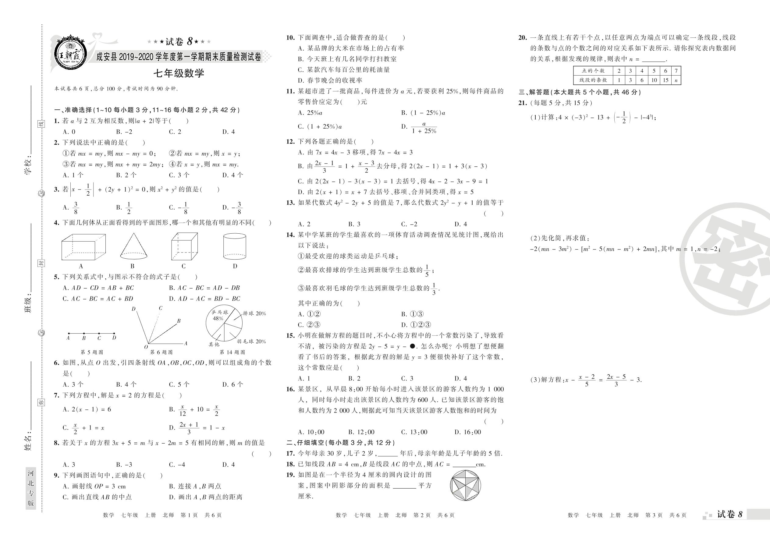 2019-2020学年第一学期邯郸市成安县七年级数学试卷(北师版)【8】