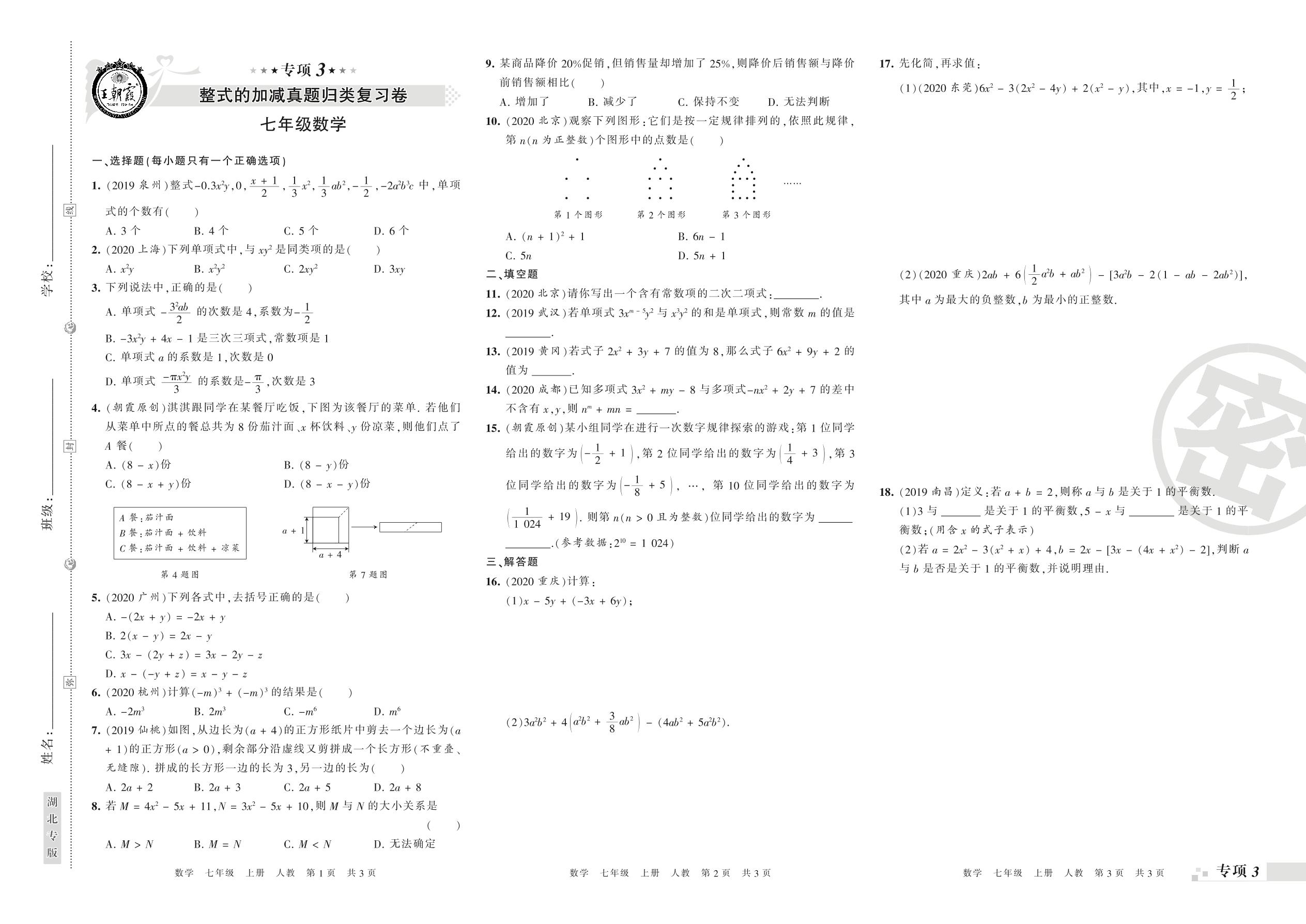 王朝霞期末专项卷——整式的加减、一元一次方程的认识与解法真题归类复习七年级上册数学(人教版)_R210805152324【0】