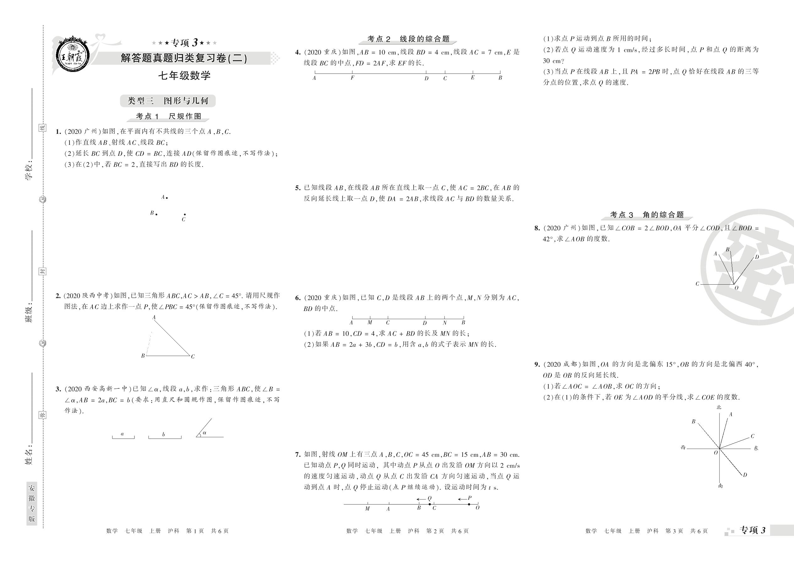 王朝霞期末专项卷——解答题真题归类复习(二)七年级上册数学(沪科版)
