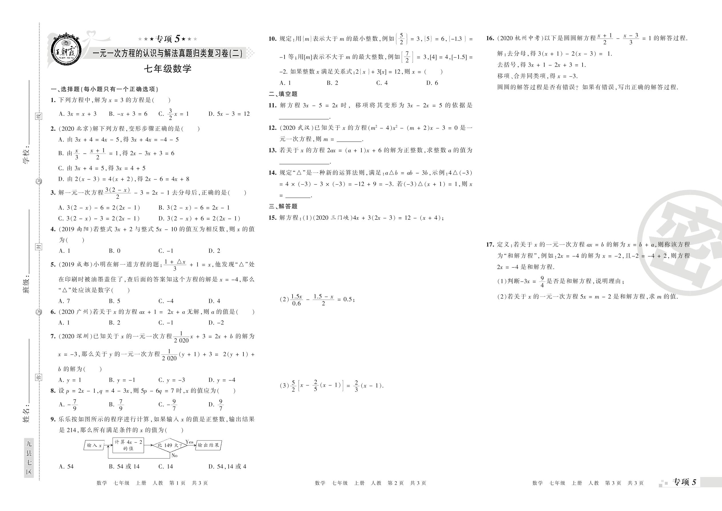 王朝霞期末专项卷——一元一次方程的认识与解法、一元一次方程的应用真题归类复习七年级上册数学(人教版)_R210805152633【0】