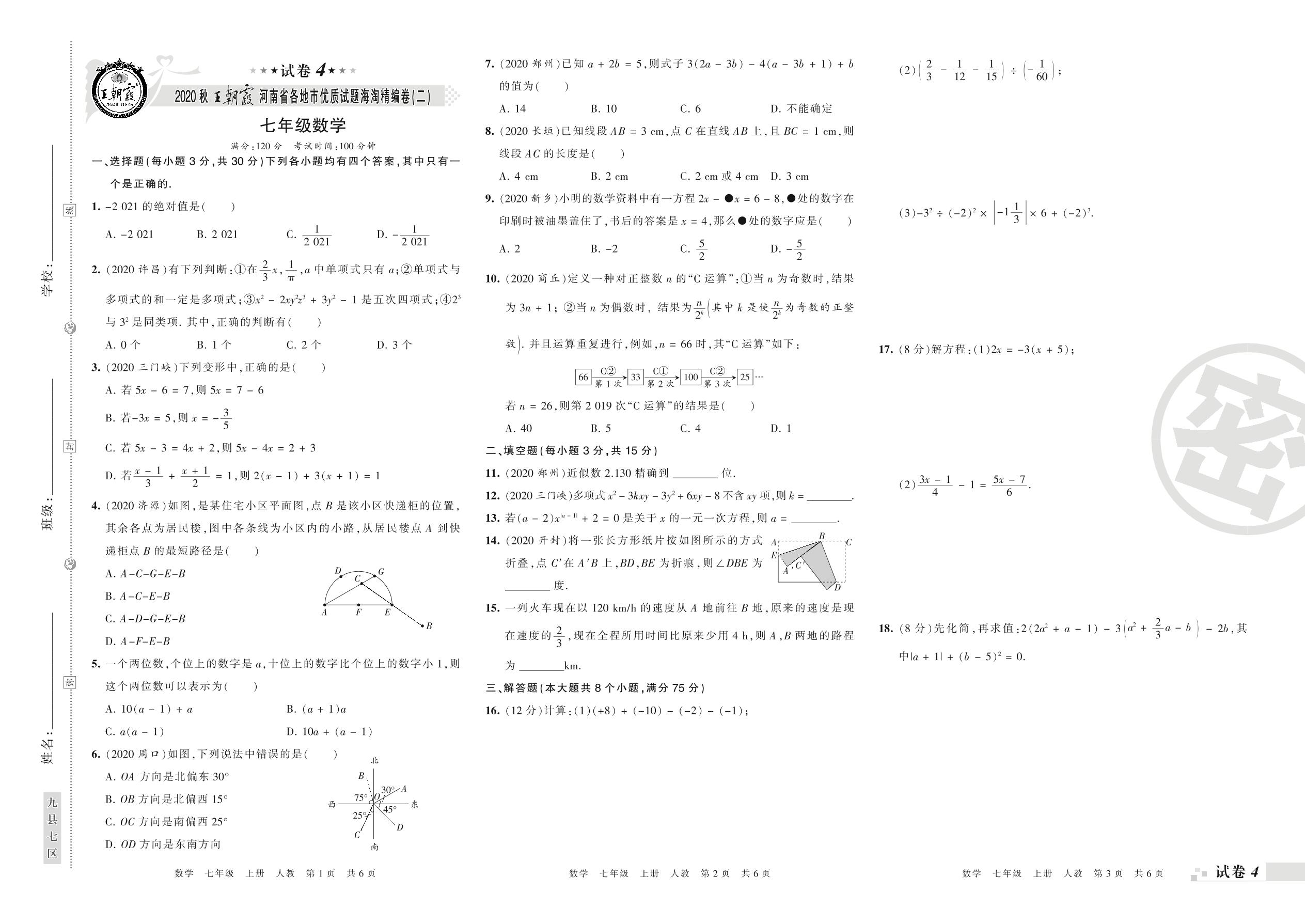 王朝霞海淘期末精编卷七年级上册数学(人教版)【4】