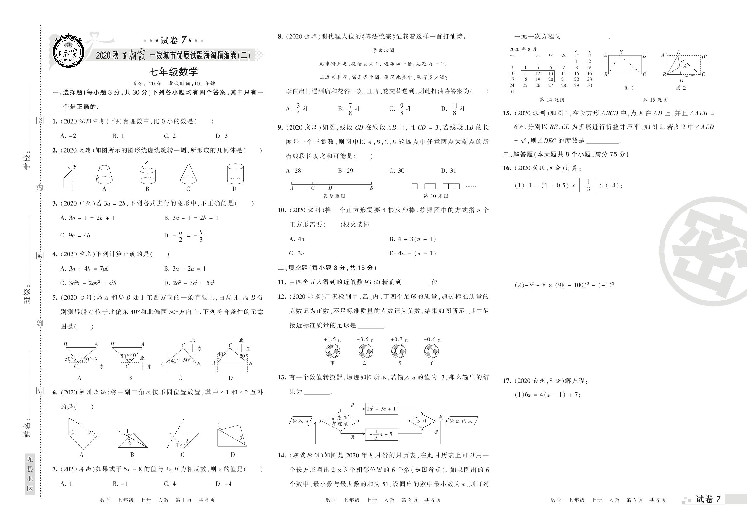 王朝霞海淘期末精编卷七年级上册数学(人教版)_R210805152733【7】
