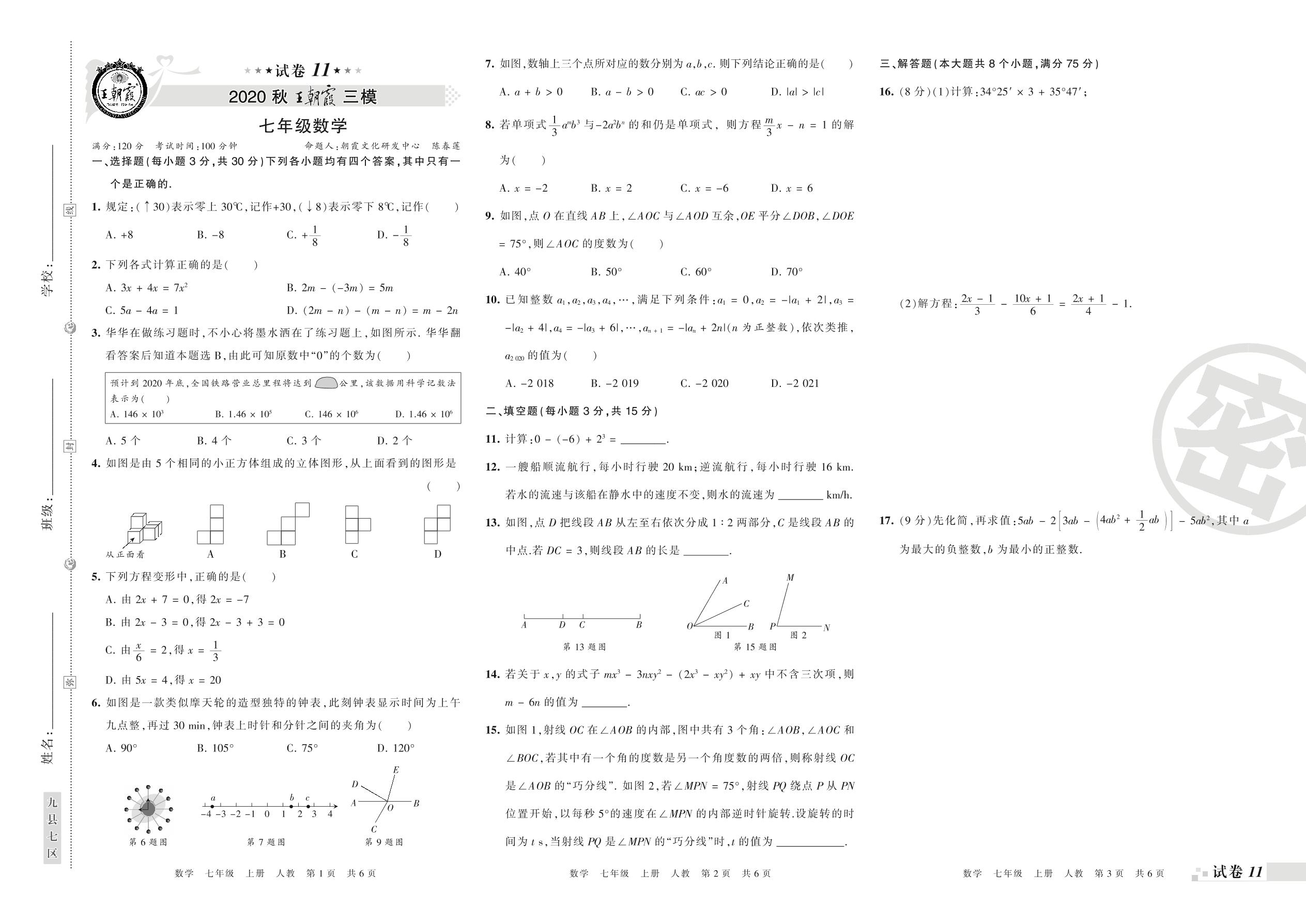 王朝霞期末模拟卷七年级上册数学(人教版)_R210805152759【11】