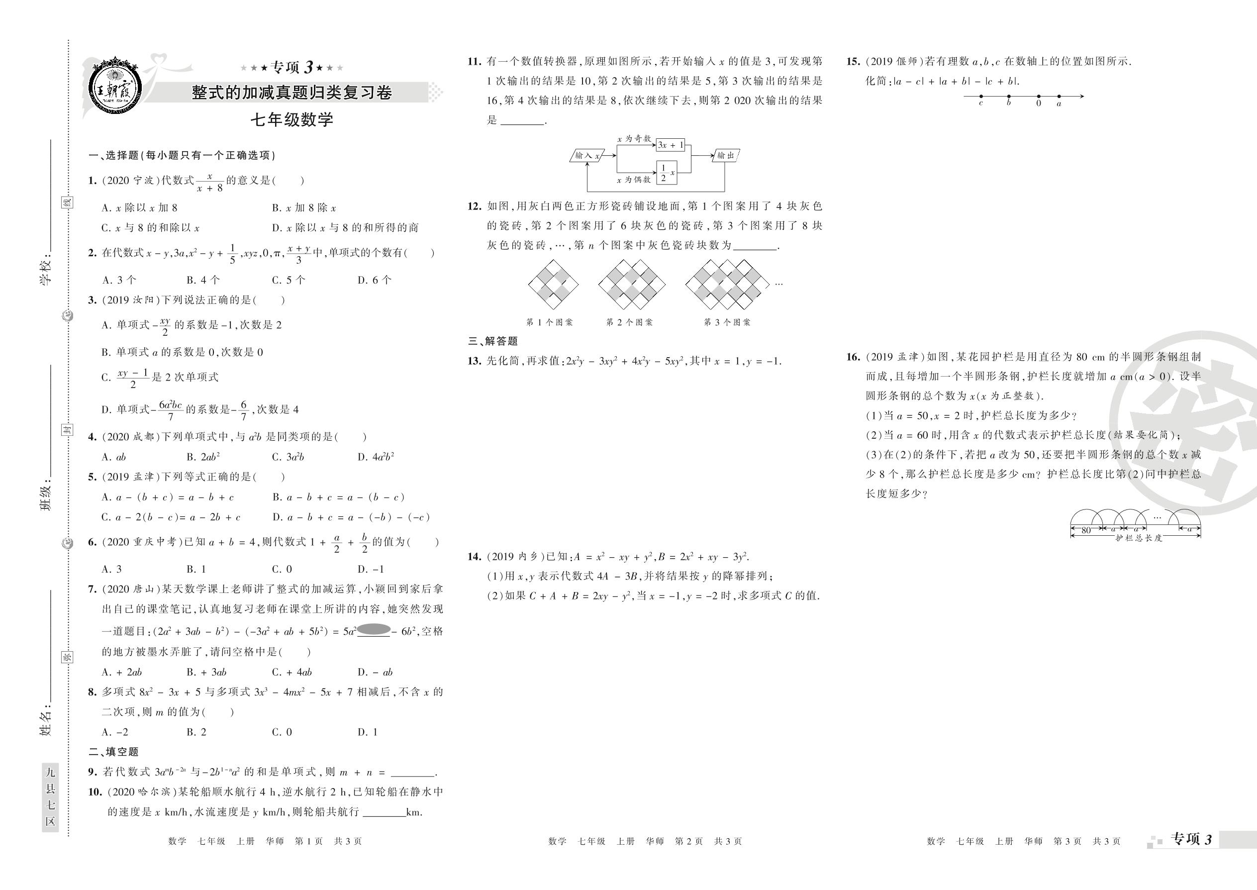 王朝霞期末专项卷——整式的加减、几何图形真题归类复习七年级上册数学(华师版)_R210805152814【0】