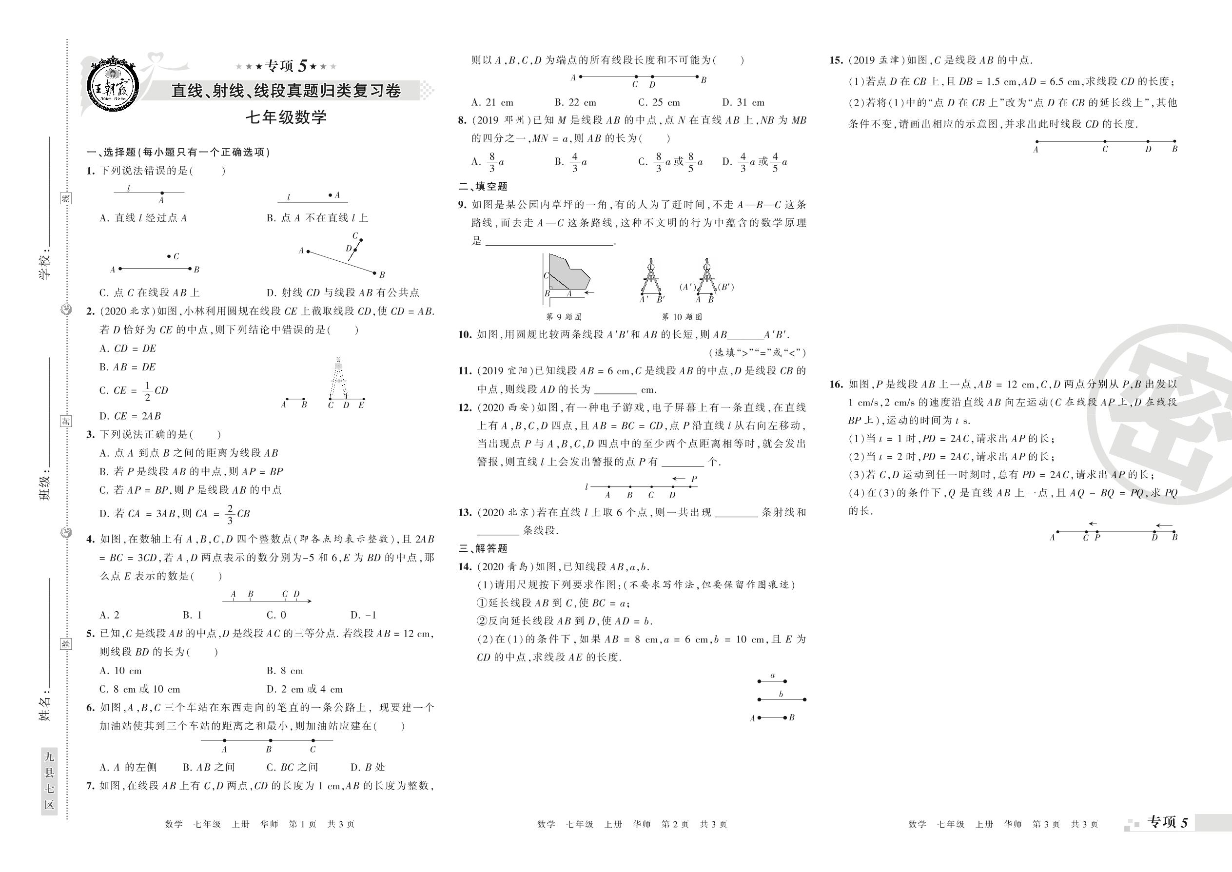 王朝霞期末专项卷——直线、射线、线段、角真题归类复习七年级上册数学(华师版)_R210805152820【0】