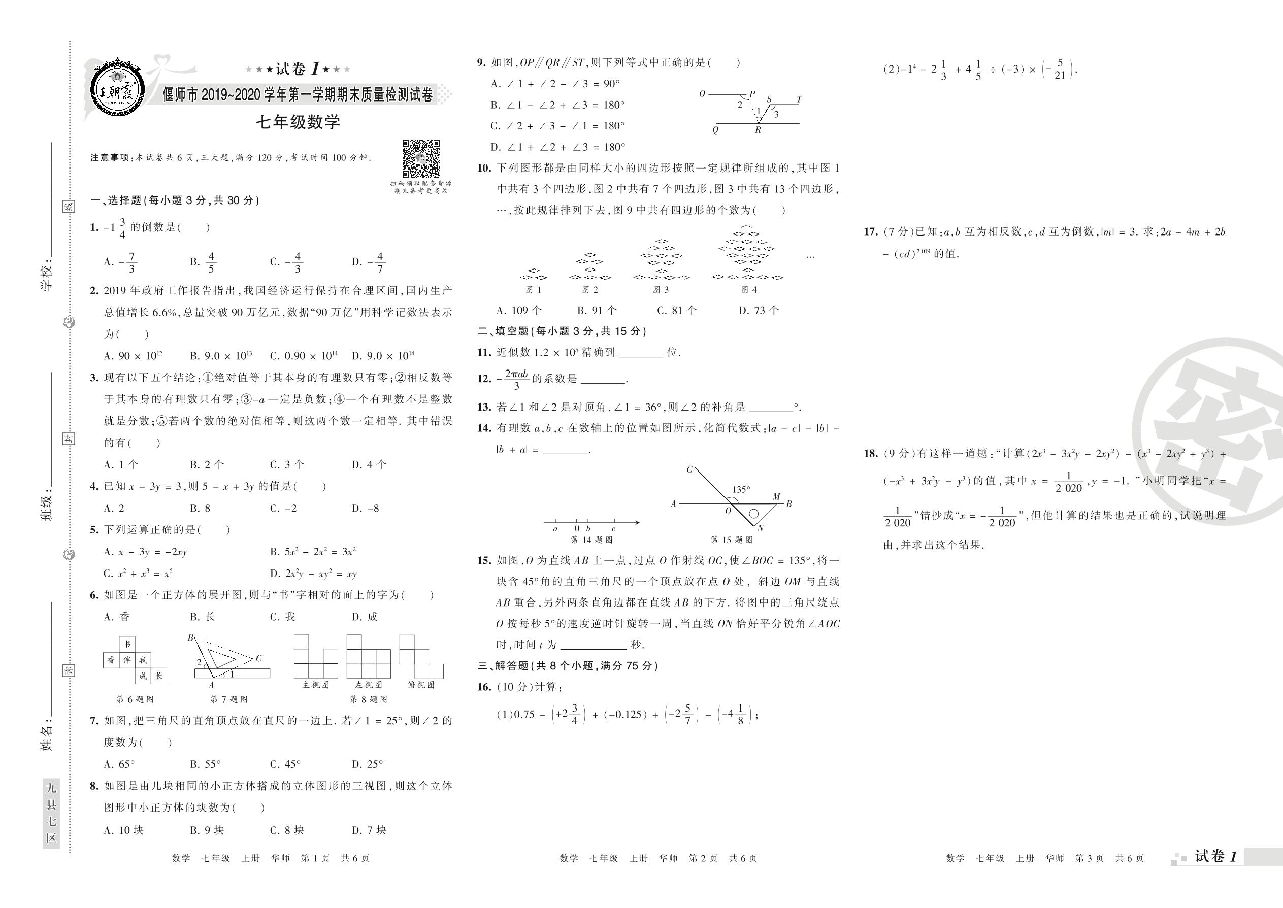 七年级数学华师版上册期末卷