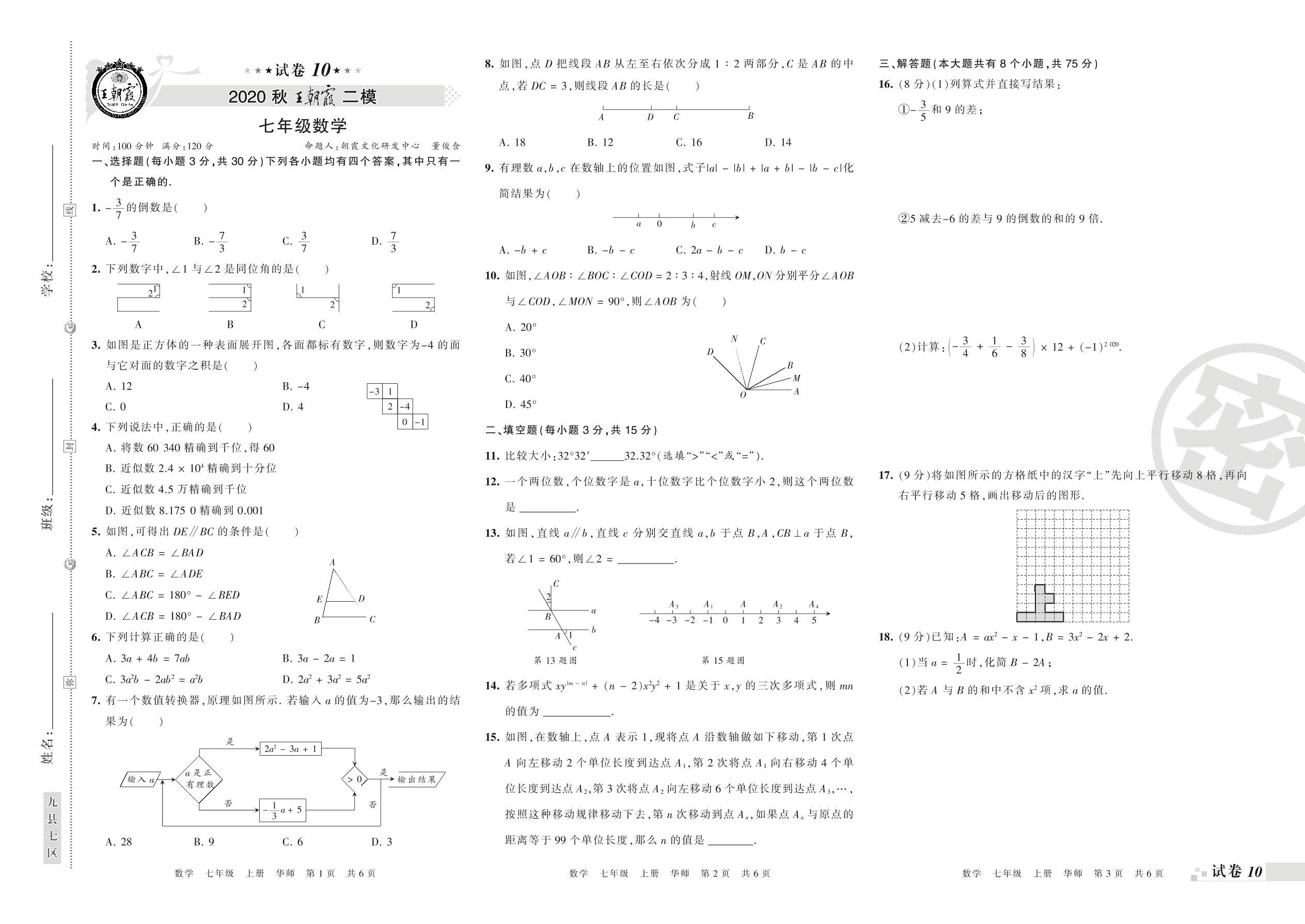 王朝霞期末模拟卷七年级上册数学(华师版)_R210805152927【10】