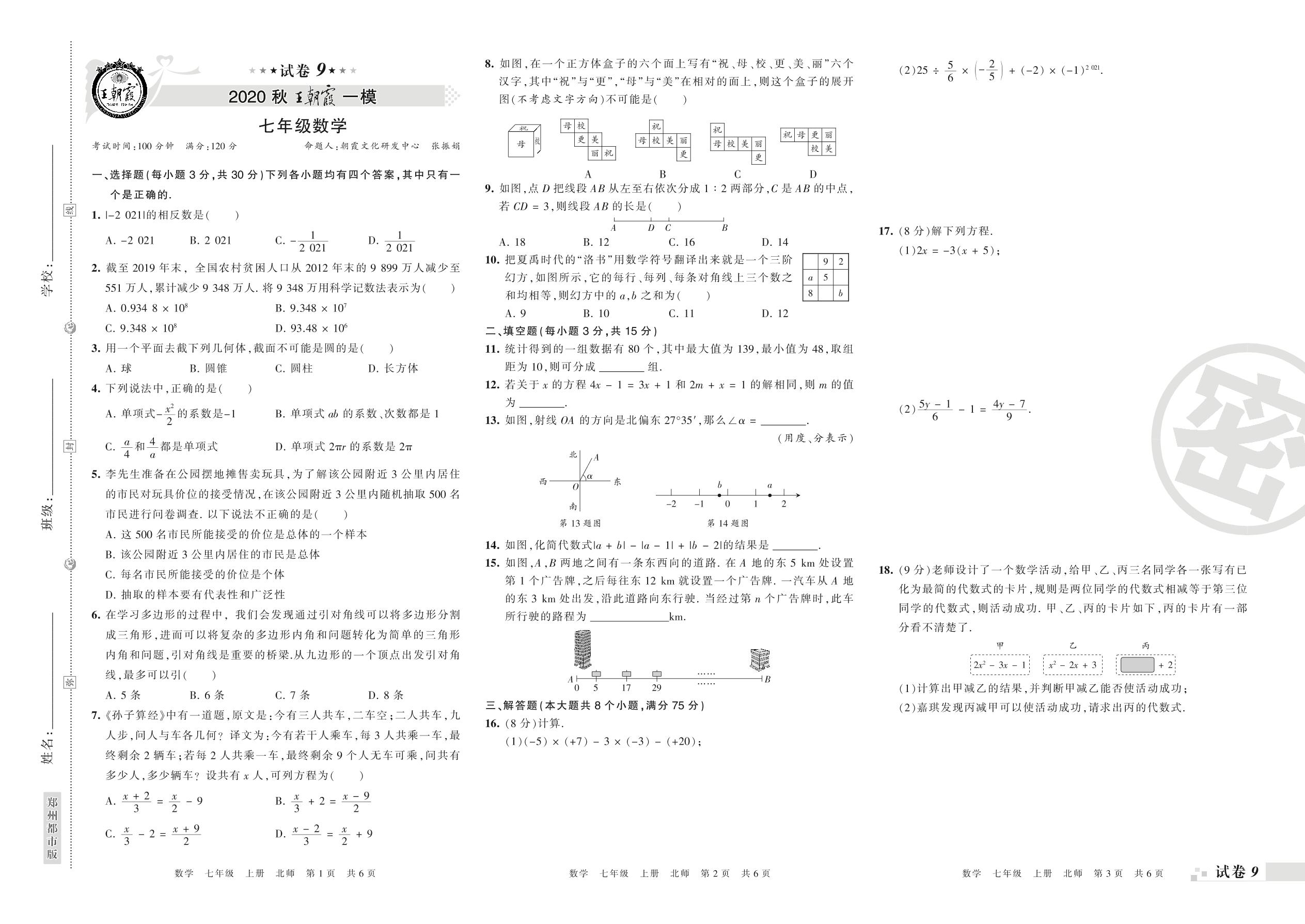 王朝霞期末模拟卷七年级上册数学(北师版)_R210805153108【9】