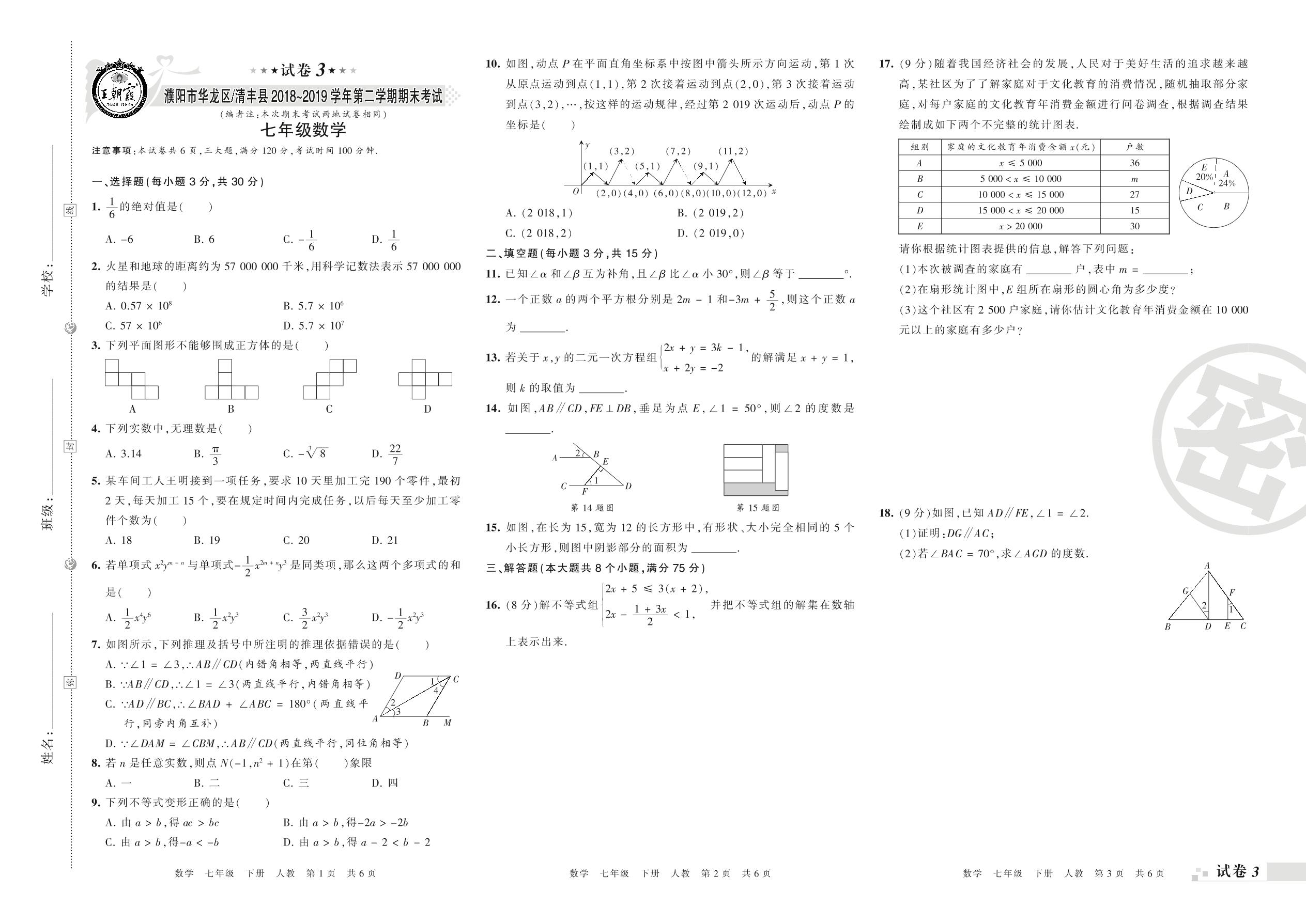 2018-2019学年第二学期濮阳市华龙区、清丰县七年级数学试卷(人教版)【3】