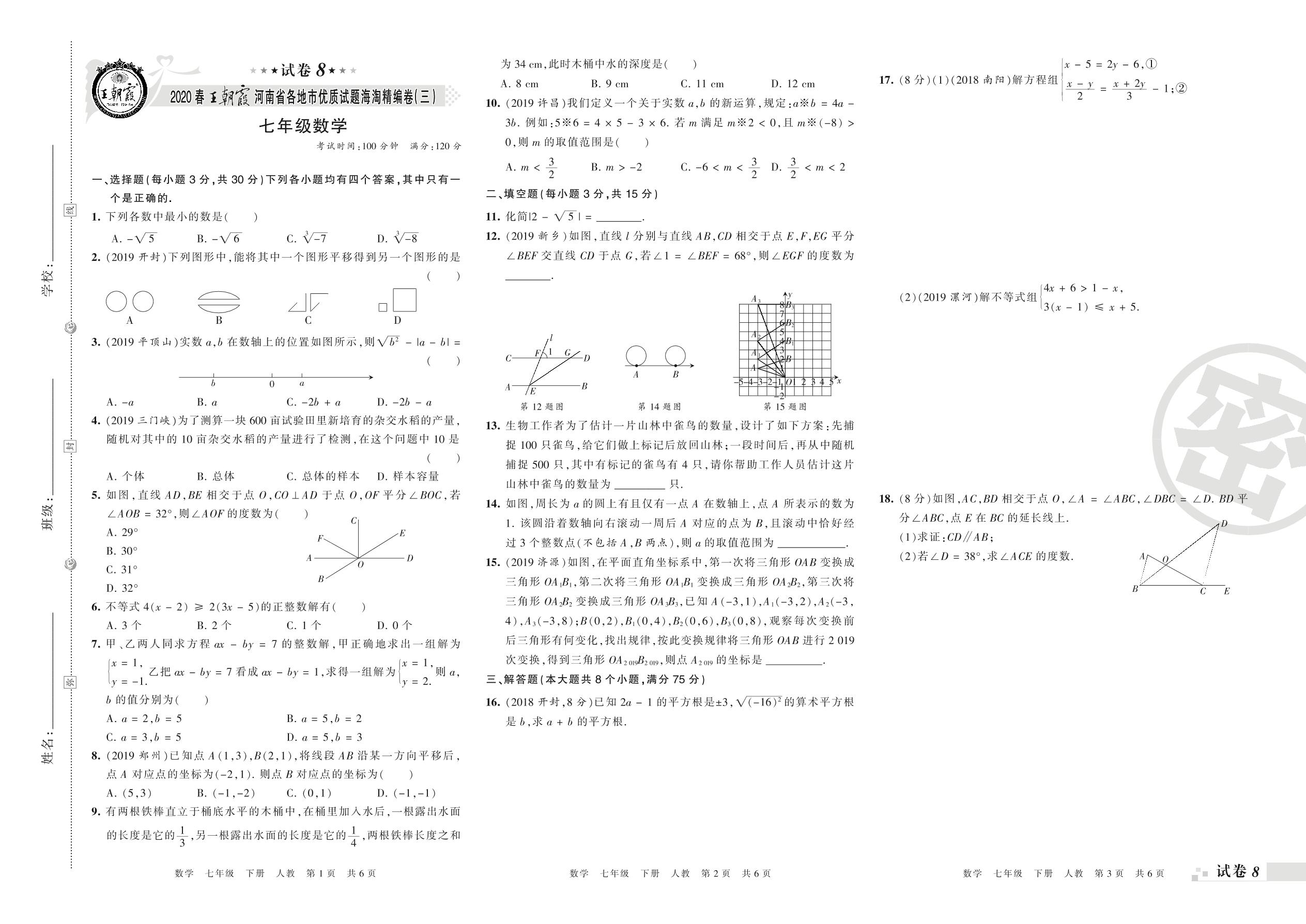 河南省各地市优质试题海淘精编卷(三)七年级下册数学(人教版)_R210805153247【8】