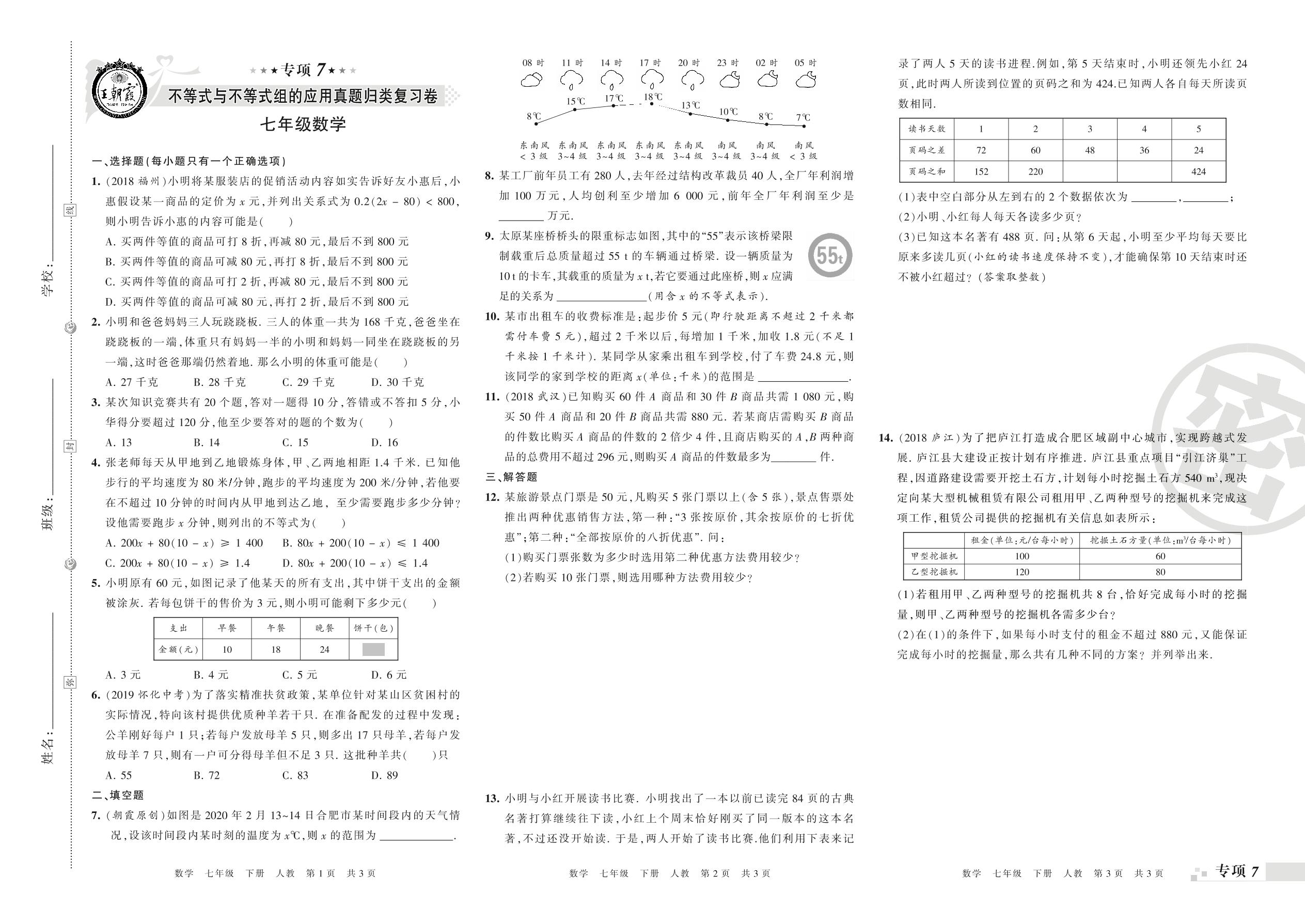 王朝霞期末专项卷——不等式与不等式组的应用、数据的收集、整理与描述真题归类复习卷七年级下册数学(人教版)_R210805153331【0】