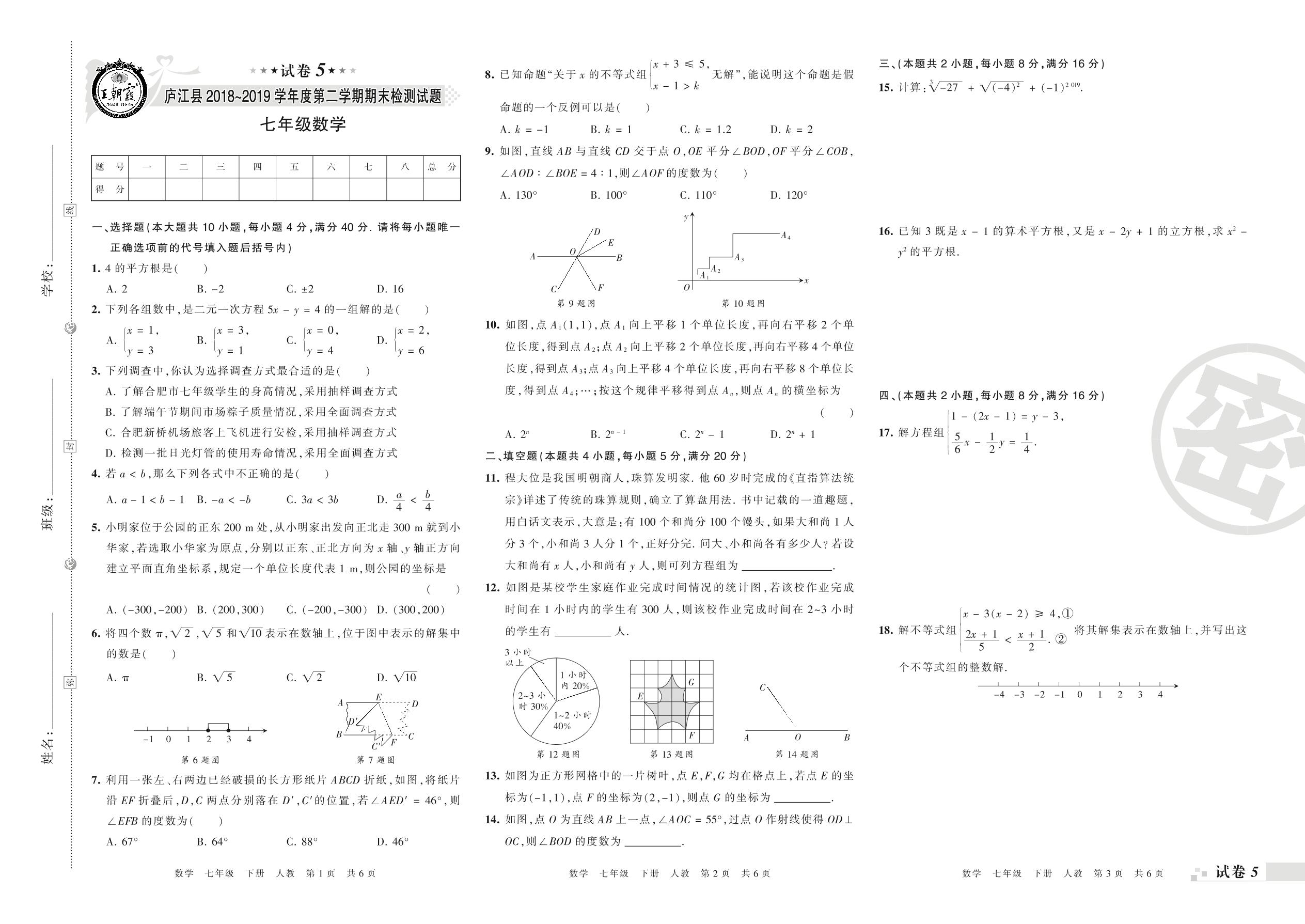 2018-2019学年第二学期合肥市庐江县七年级数学试卷(人教版)【5】