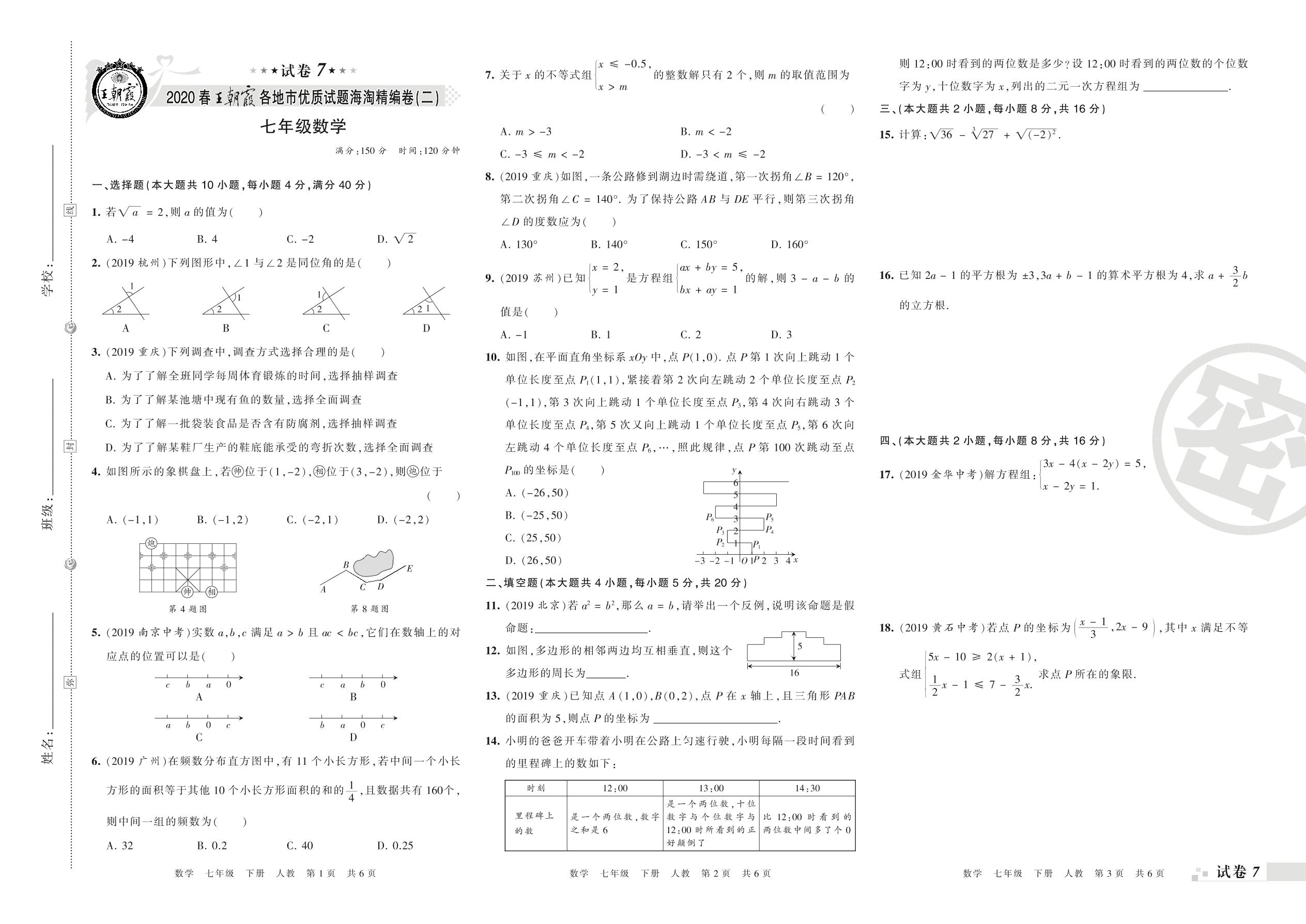 各地市优质试题海淘精编卷(二)七年级下册数学(人教版)_R210805153408【7】