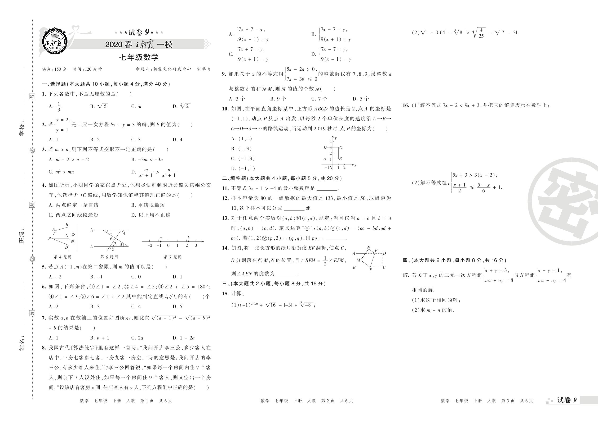 王朝霞期末模拟卷七年级下册数学(人教版)_R210805153421【9】