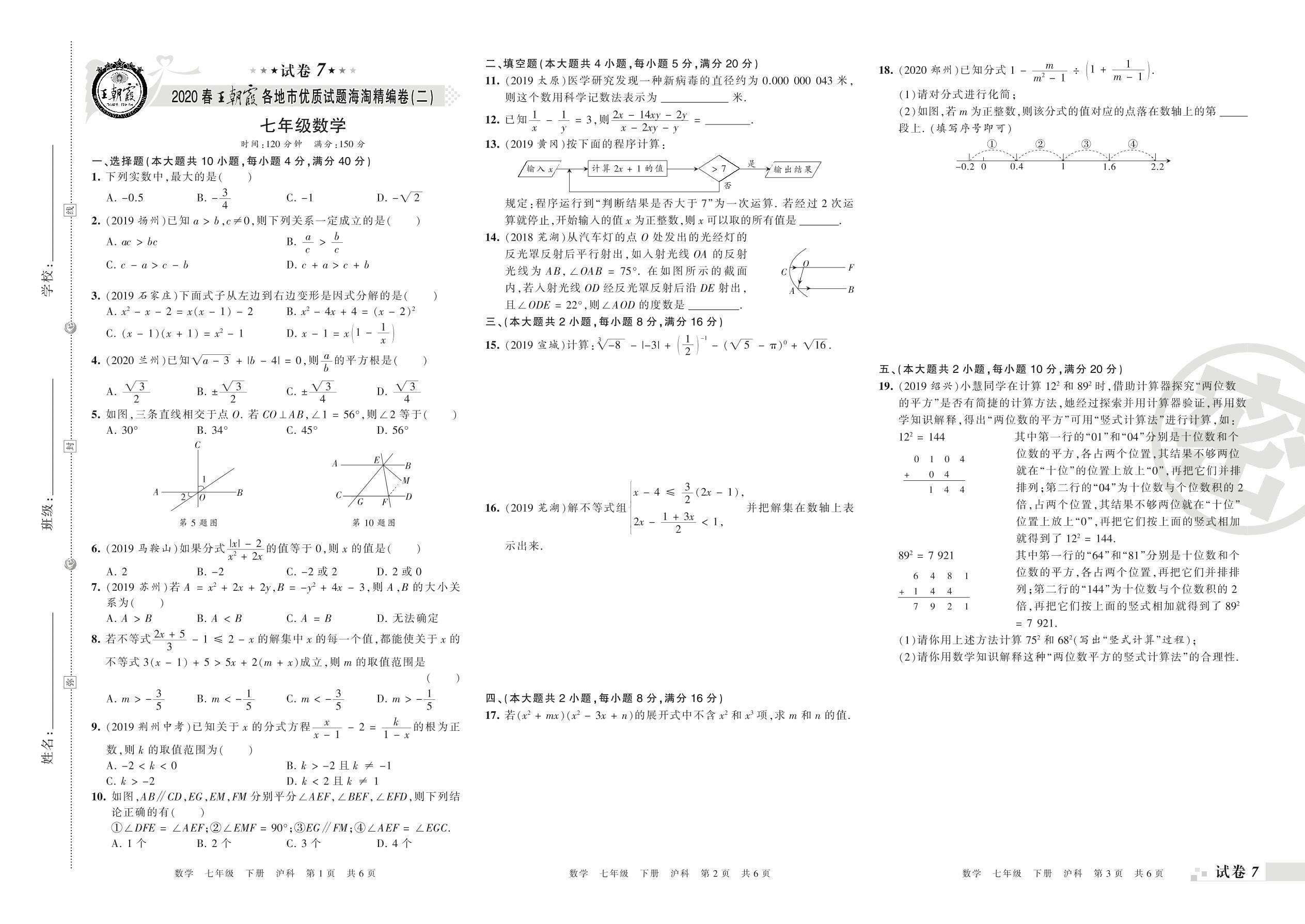 各地市优质试题海淘精编卷(二)七年级下册数学(沪科版)【7】