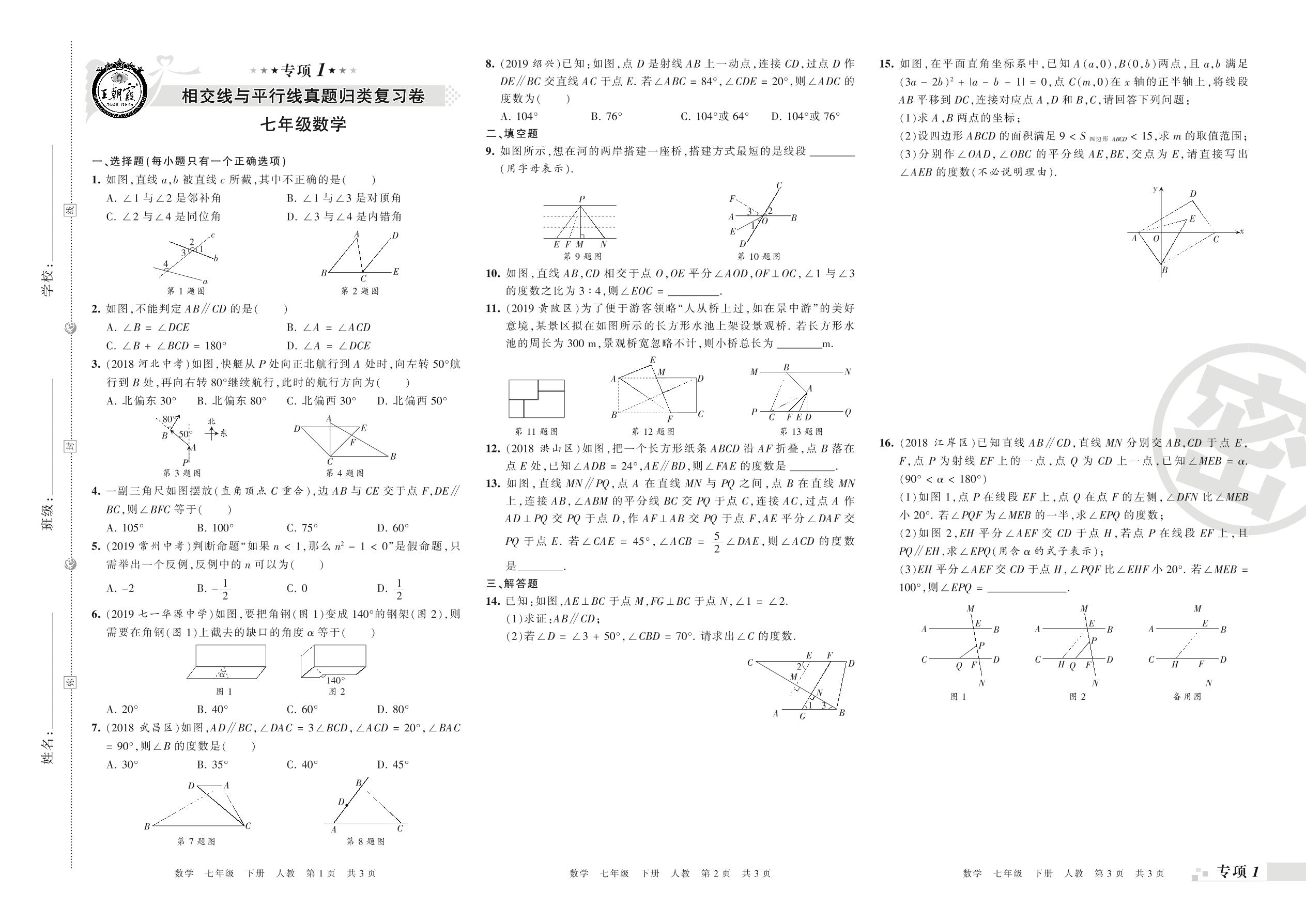 王朝霞期末专项卷——相交线与平行线、实数真题归类复习卷七年级下册数学(人教版)_R210805153635【0】