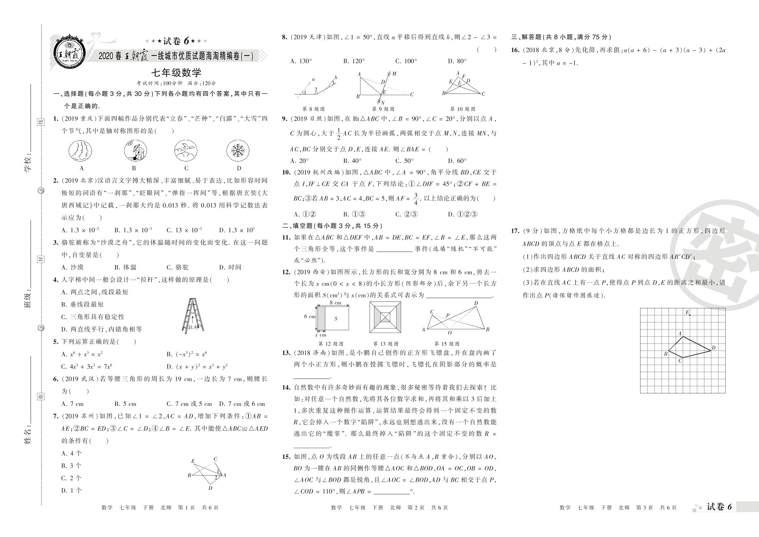 一线城市优质试题海淘精编卷(一)七年级下册数学(北师版)_R210805154155【6】