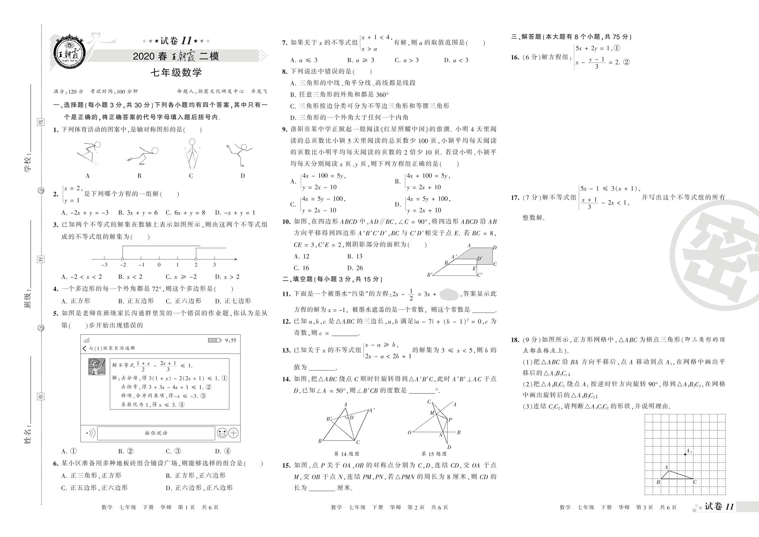 王朝霞期末模拟卷七年级下册数学(华师版)_R210805154900【11】