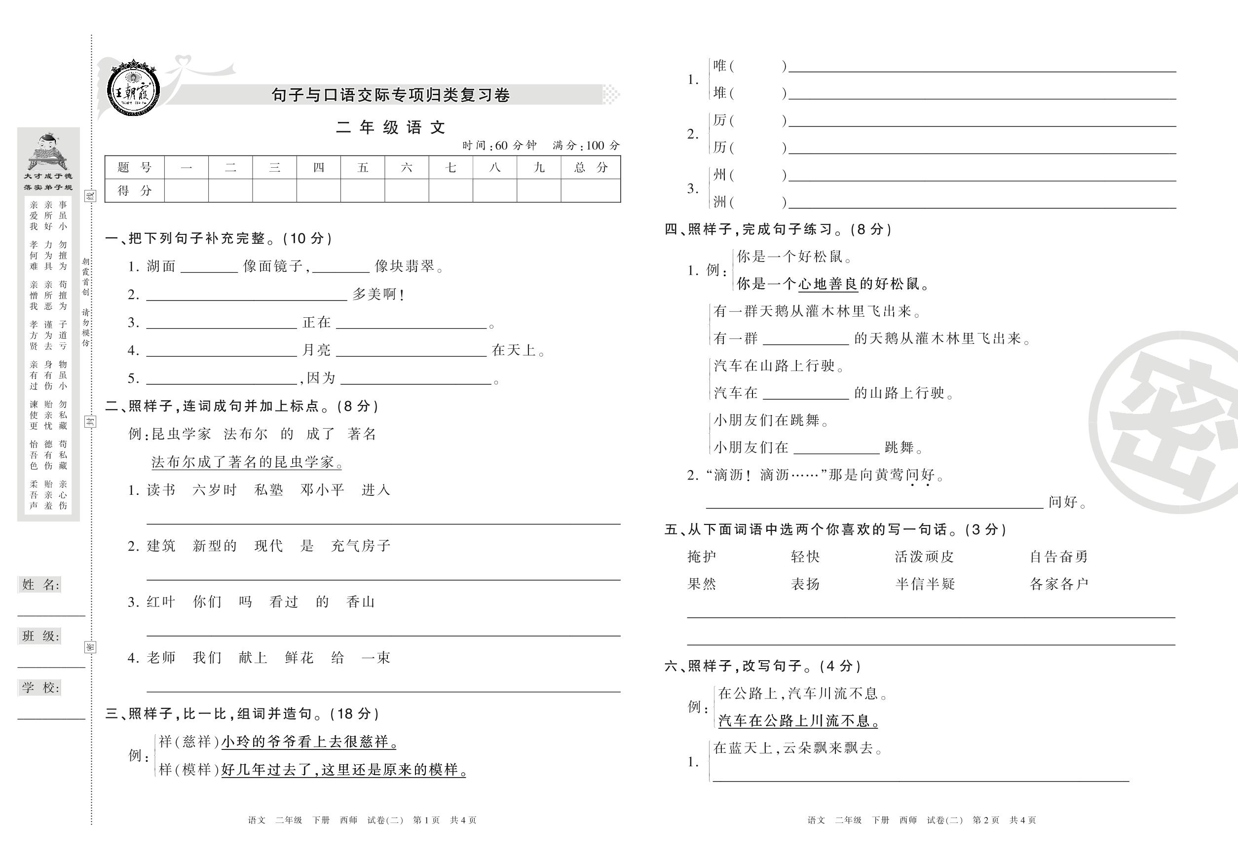 王朝霞期末专项卷二年级下册语文(西师版)_R21080173607【2】