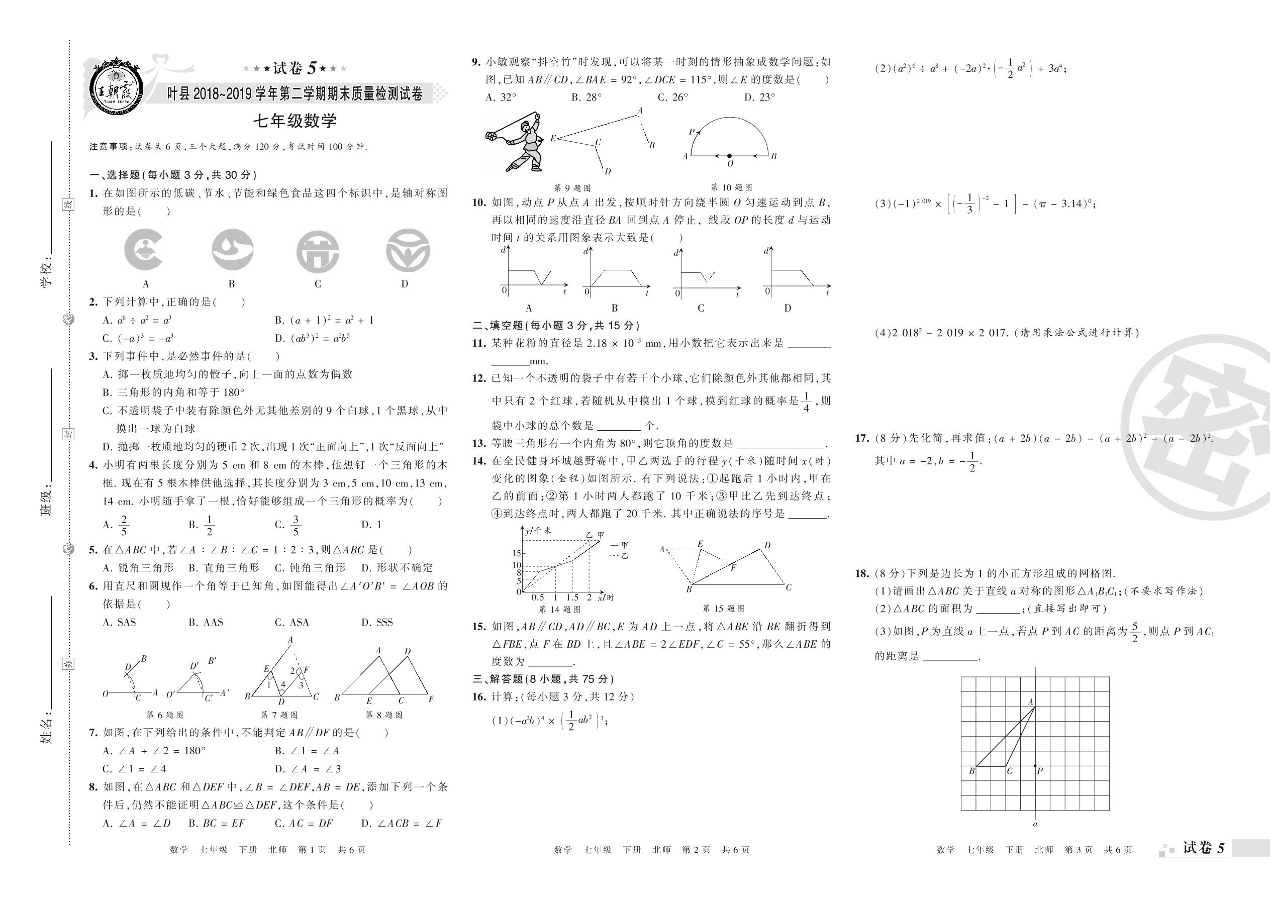 2018-2019学年第二学期平顶山市叶县七年级数学试卷(北师版)【5】